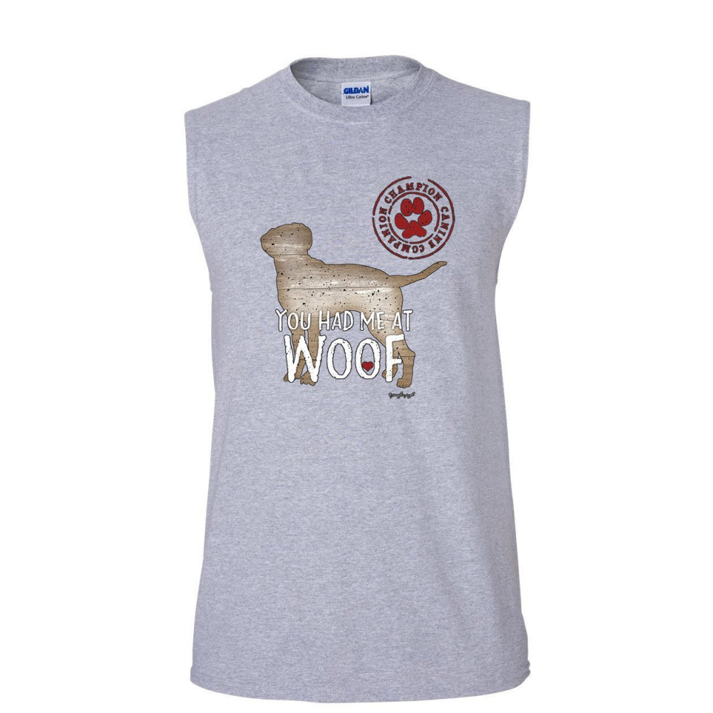 YOU HAD ME AT WOOF muscle shirt pet friend dogs doggie puppy paw bark sleeveless gray
