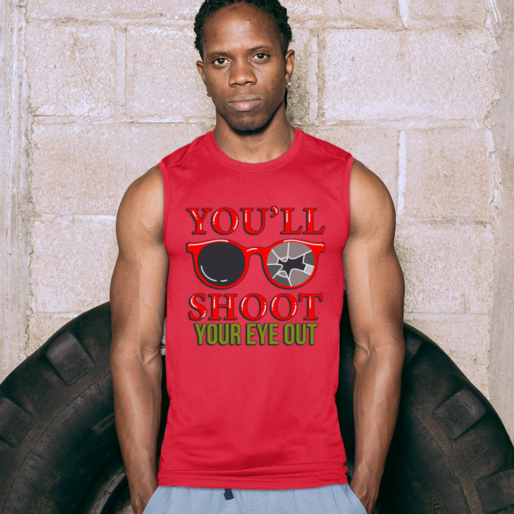YOU'LL SHOOT YOUR EYE OUT muscle shirt funny christmas saying xmas men's red