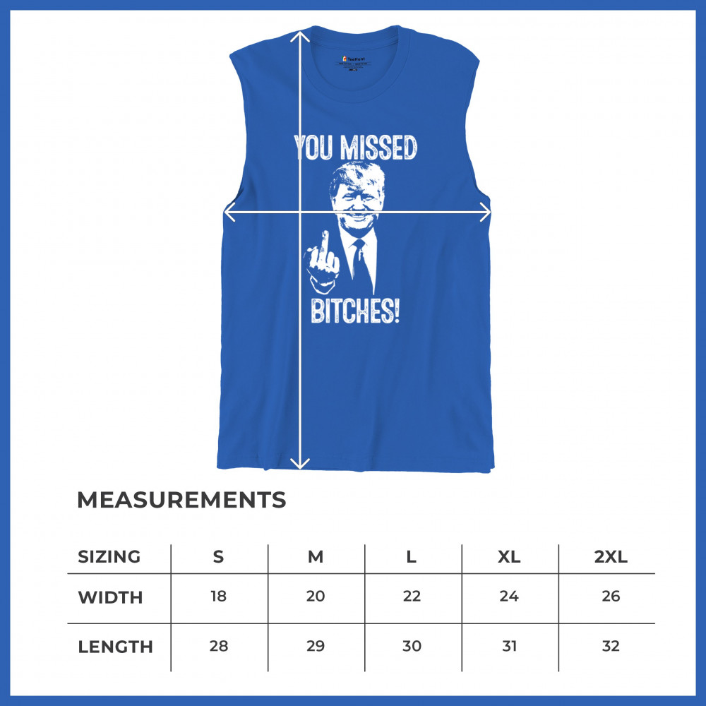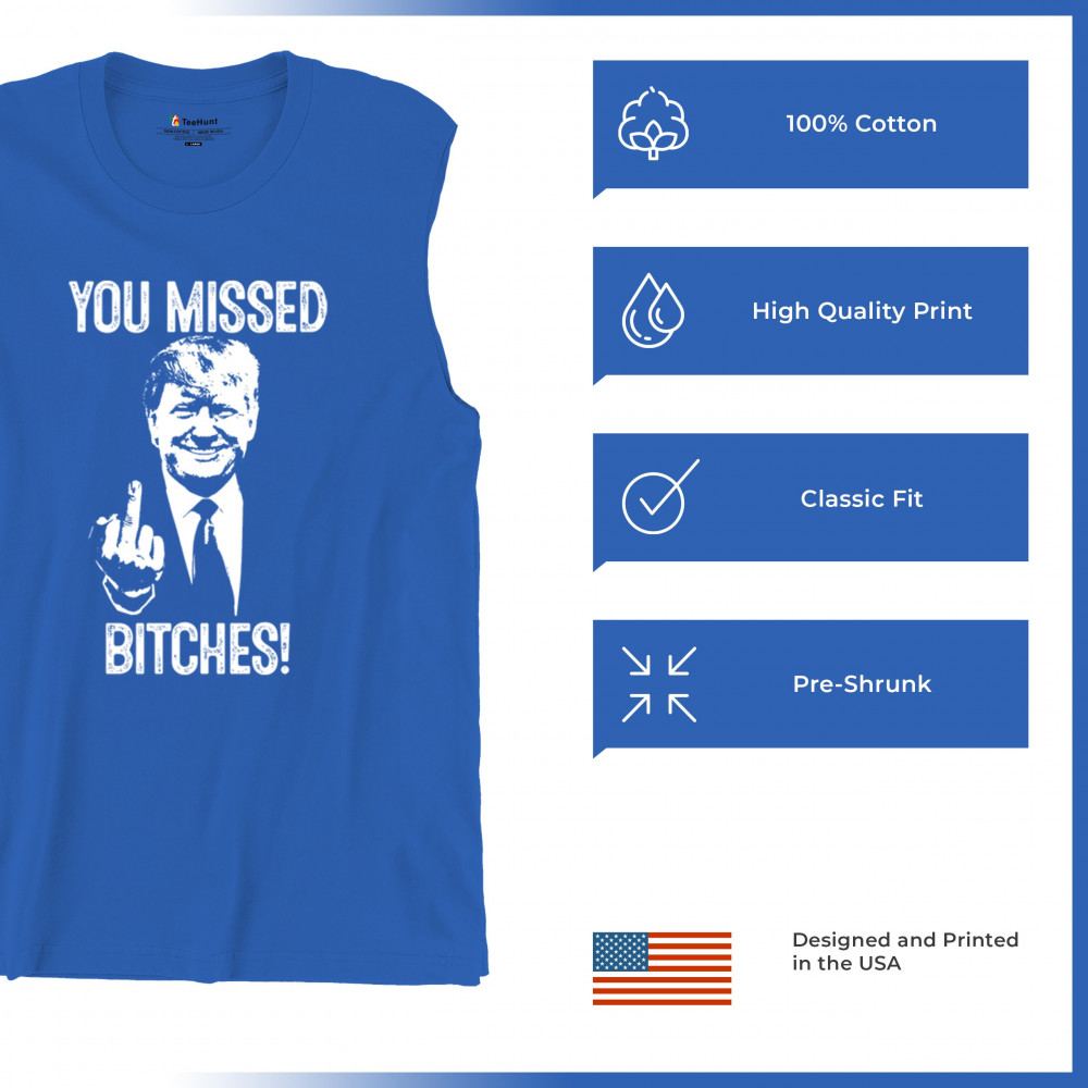 Commemorate Trump's resilience and determination with our bold "You Missed Bitches!" design. Show your support and patriotism.