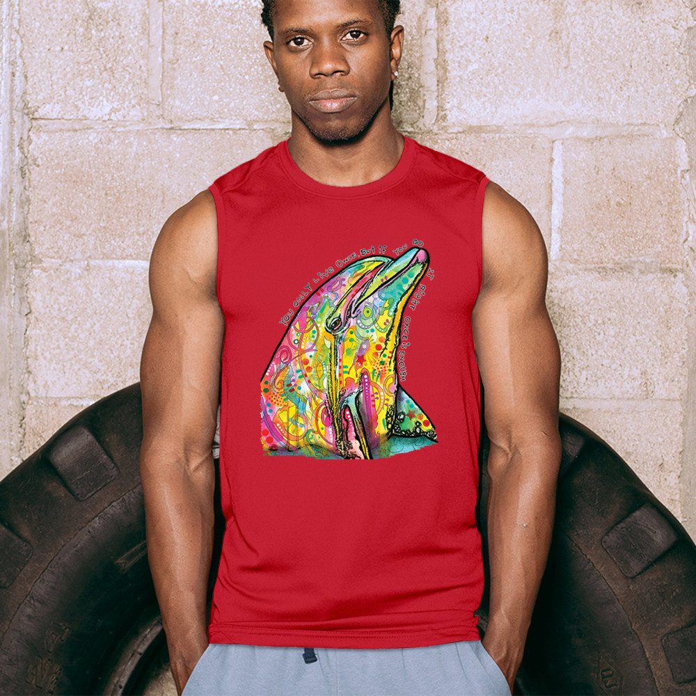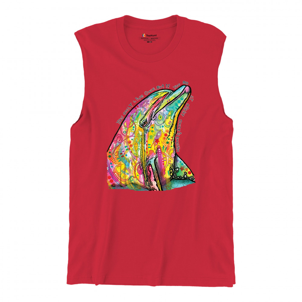 YOU ONLY LIVE ONCE muscle shirt cute neon dolphin dean russo yolo men's red