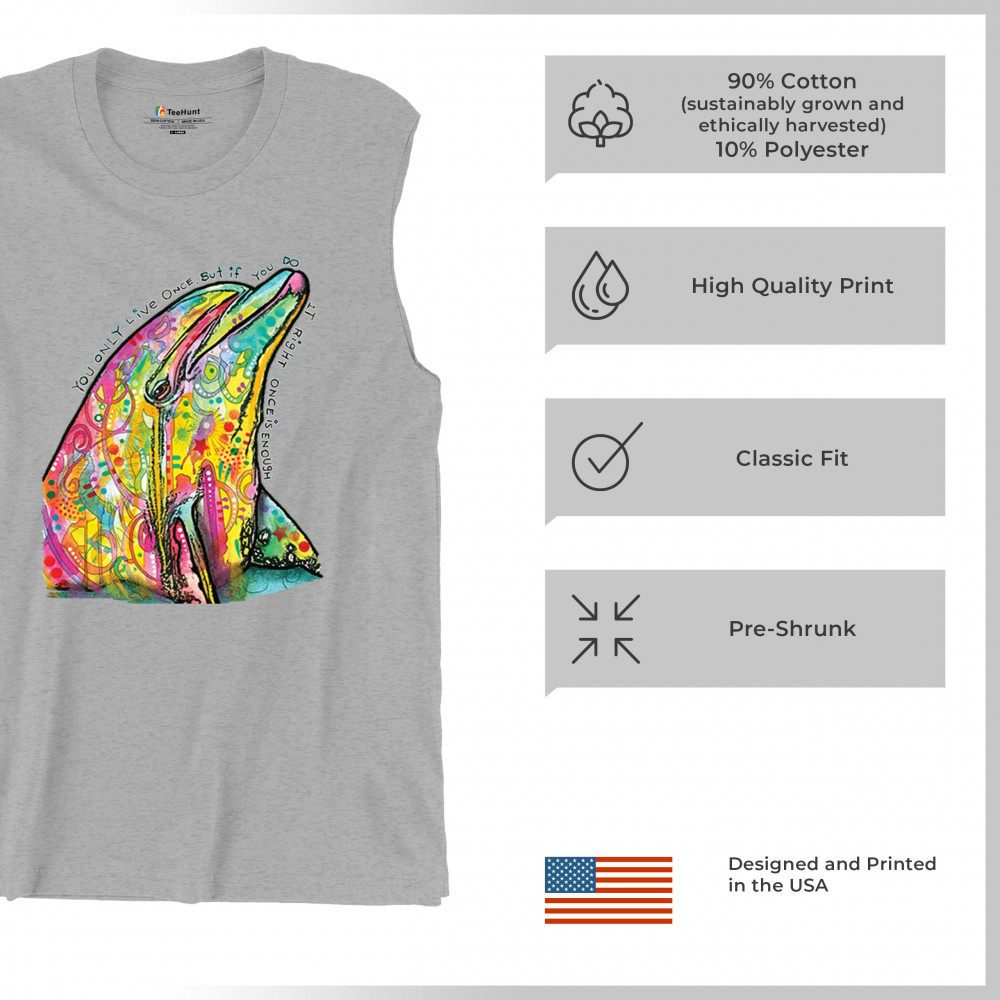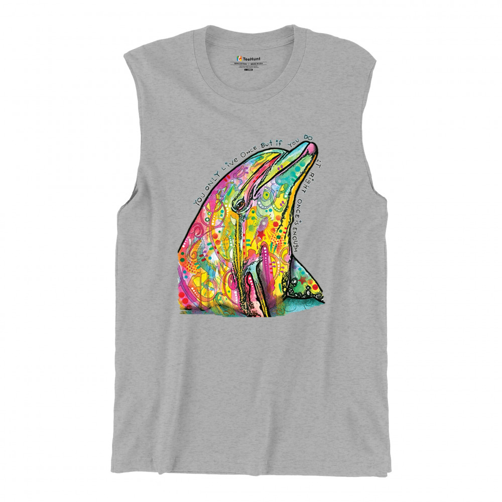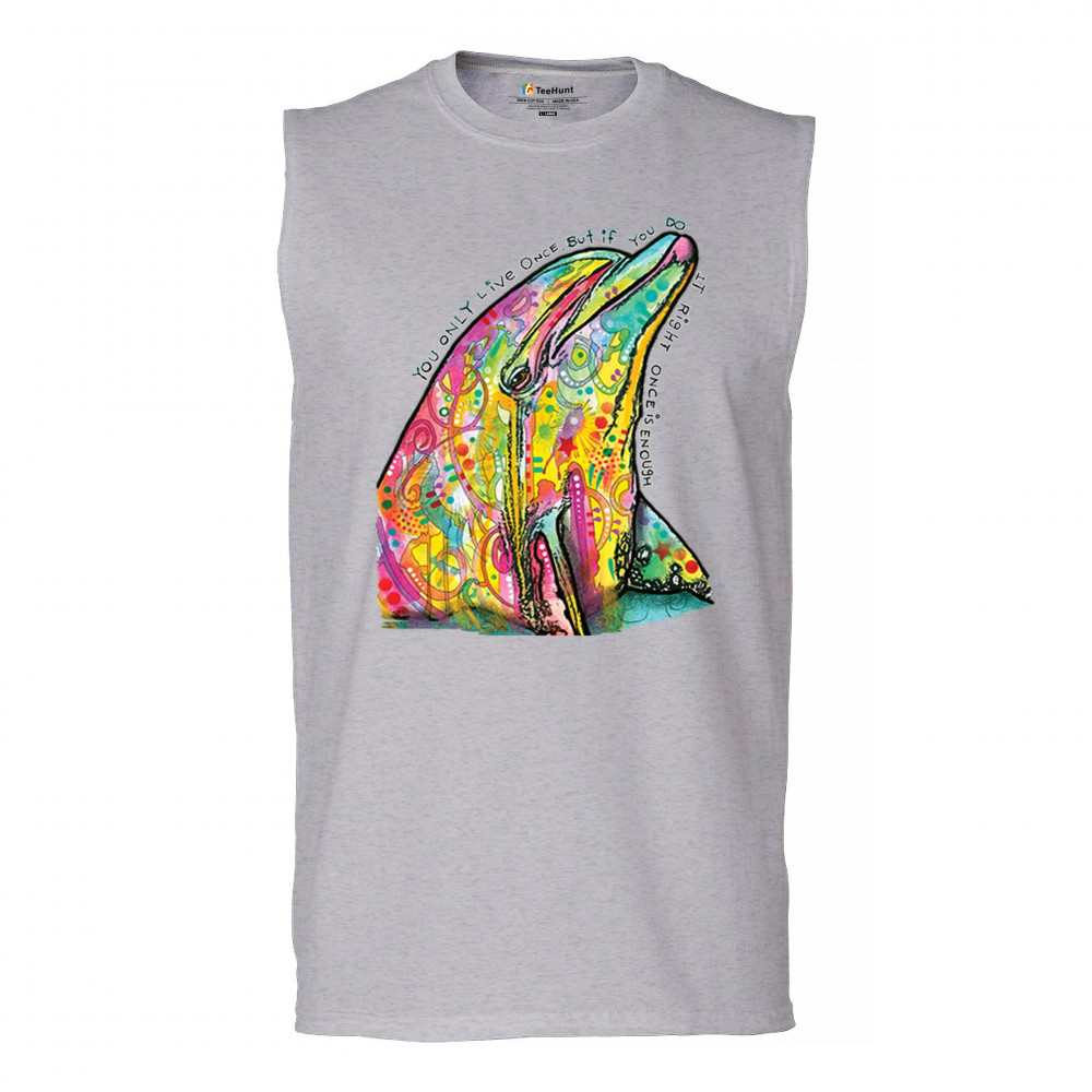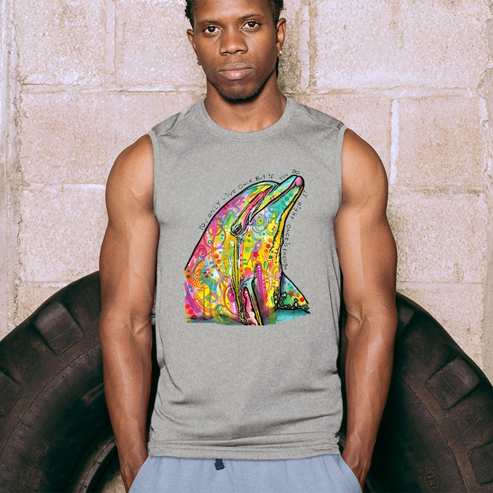 YOU ONLY LIVE ONCE muscle shirt cute neon dolphin dean russo yolo men's gray
