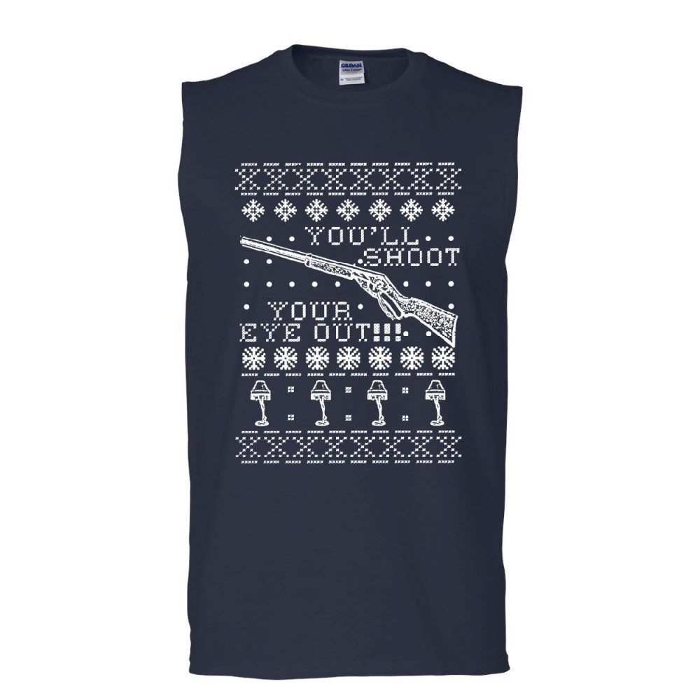 YOU'LL SHOOT YOUR EYE OUT muscle shirt funny christmas ugly sweater xmas top navy blue