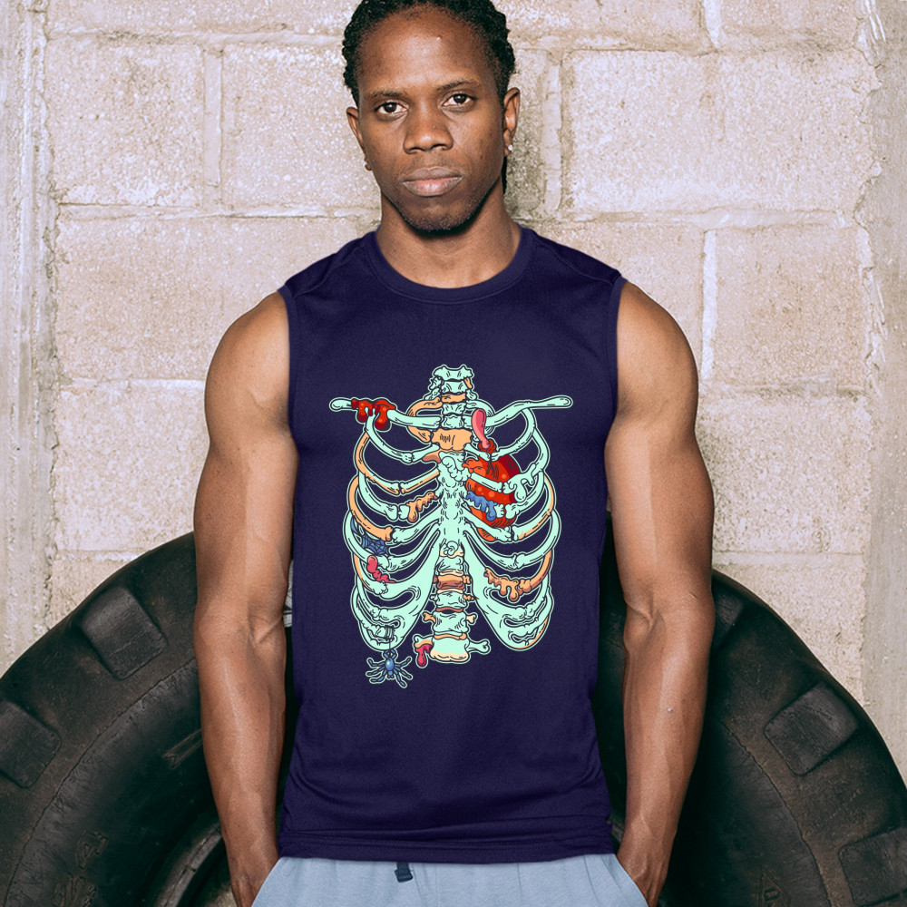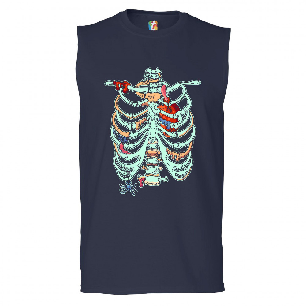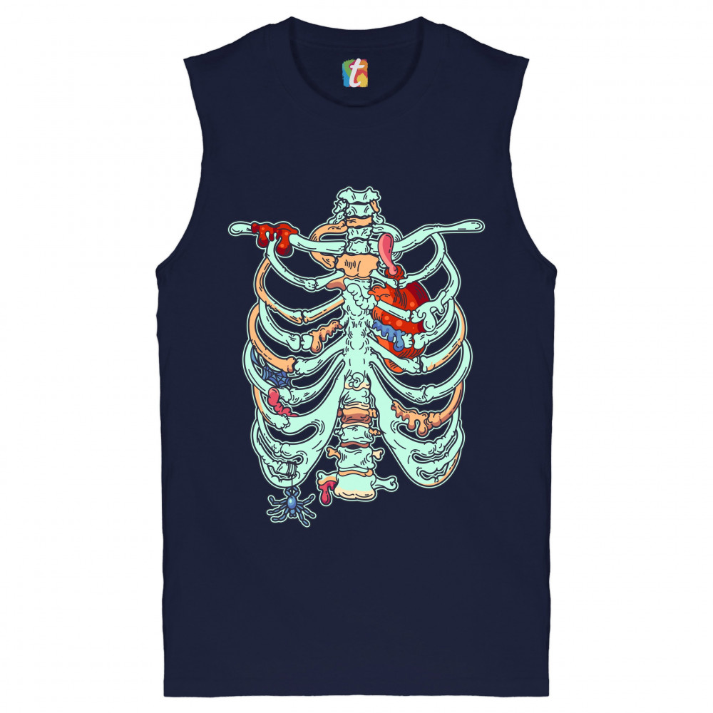 ZOMBIE RIB CAGE muscle shirt all hallows' eve spooky halloween skeleton men's navy blue