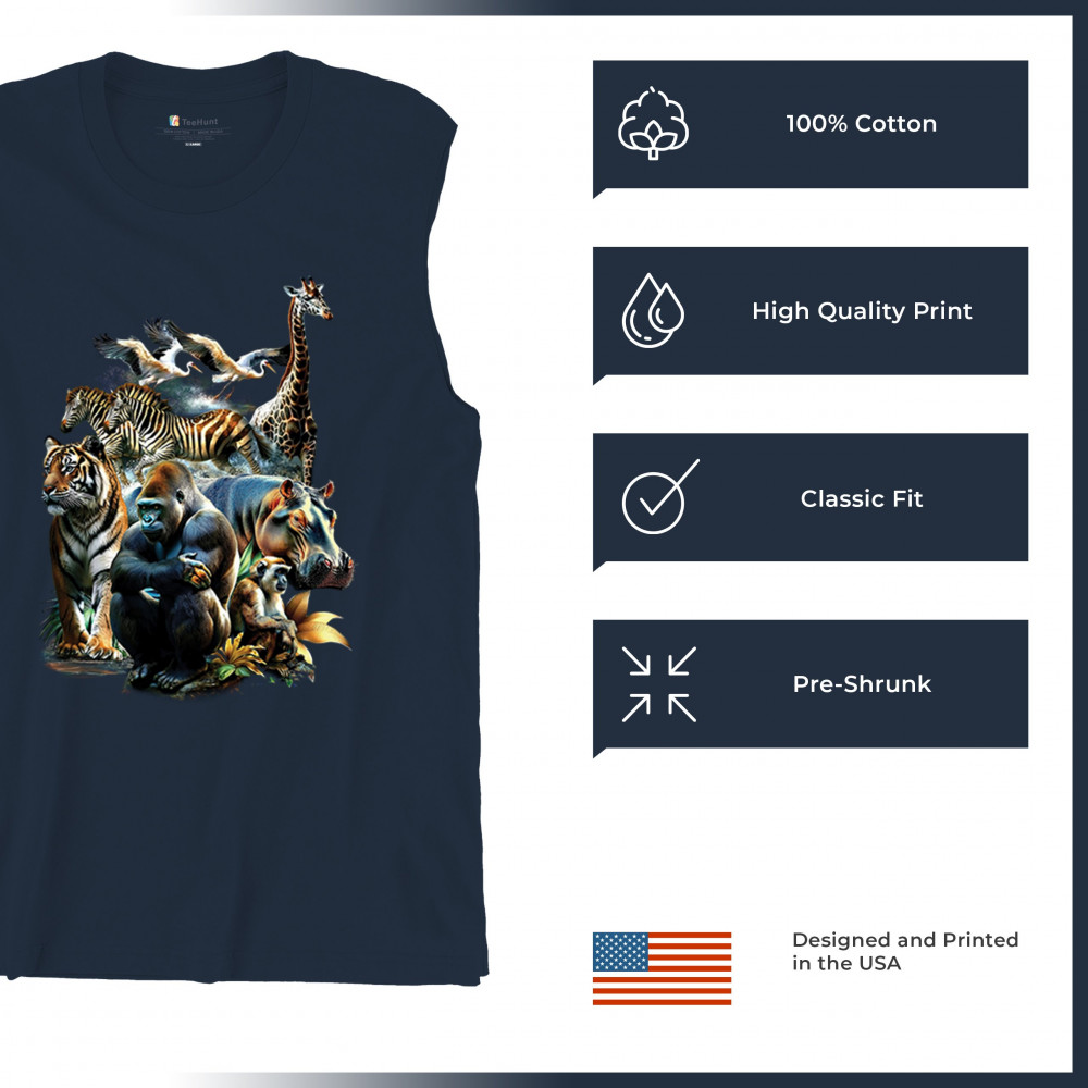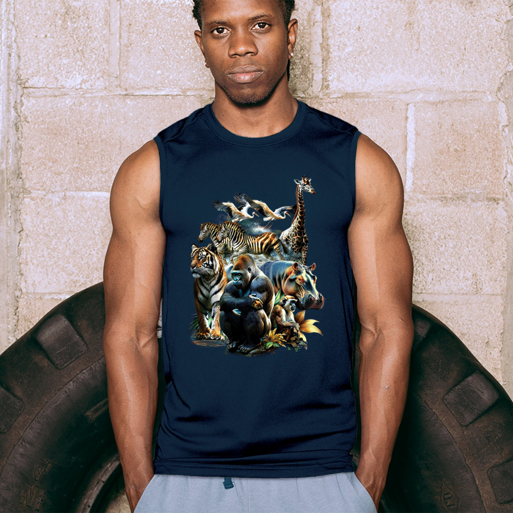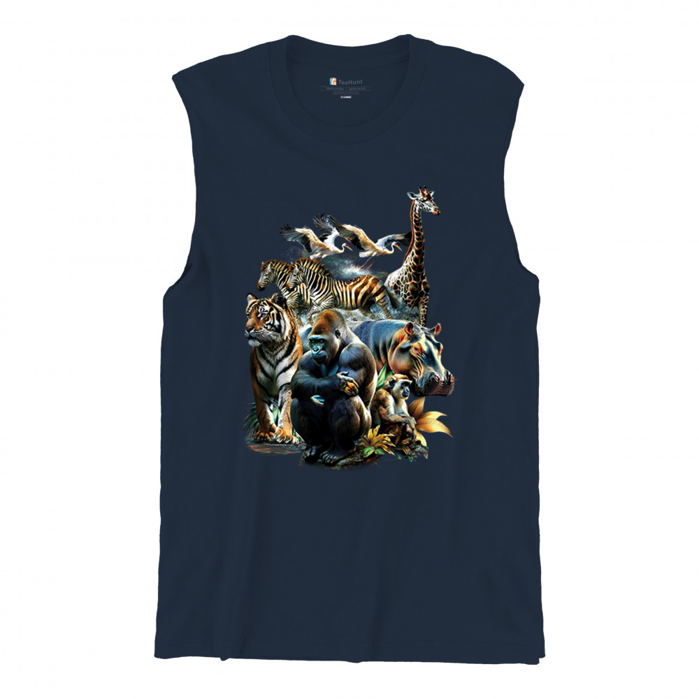 Packed with fierce energy and vibrant color, this wildlife design features a jungle coalition of gorilla, tiger, monkey, zebra, giraffe, hippo, and birds. A powerful tribute to animal beauty, biodiversity, and nature's harmony. Perfect for jungle tour enthusiasts, zoo visitors, or anyone passionate about wild conservation and stunning creature art.