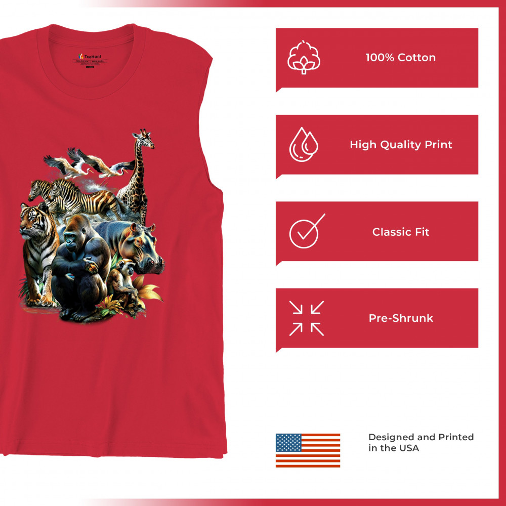 Packed with fierce energy and vibrant color, this wildlife design features a jungle coalition of gorilla, tiger, monkey, zebra, giraffe, hippo, and birds. A powerful tribute to animal beauty, biodiversity, and nature's harmony. Perfect for jungle tour enthusiasts, zoo visitors, or anyone passionate about wild conservation and stunning creature art.
