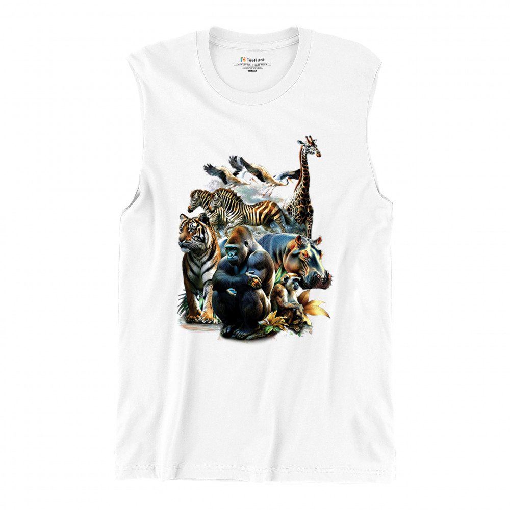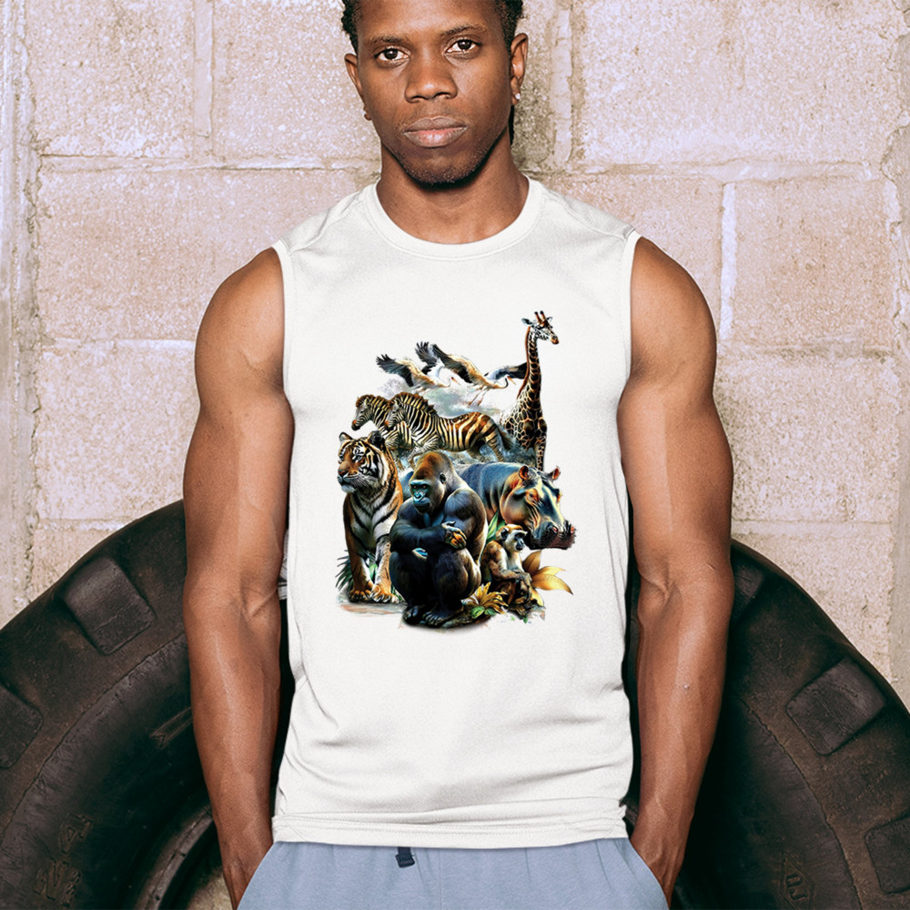 Packed with fierce energy and vibrant color, this wildlife design features a jungle coalition of gorilla, tiger, monkey, zebra, giraffe, hippo, and birds. A powerful tribute to animal beauty, biodiversity, and nature's harmony. Perfect for jungle tour enthusiasts, zoo visitors, or anyone passionate about wild conservation and stunning creature art.