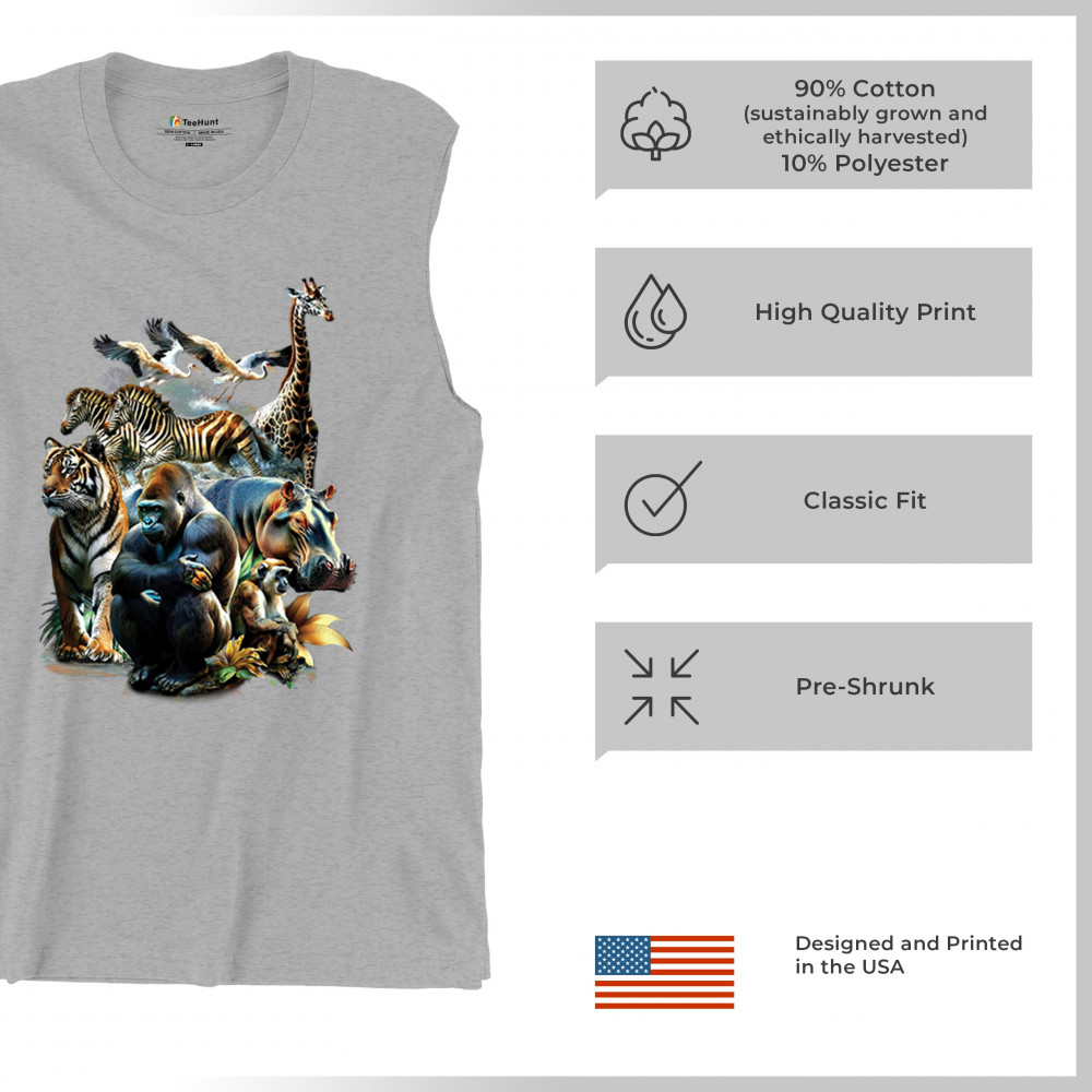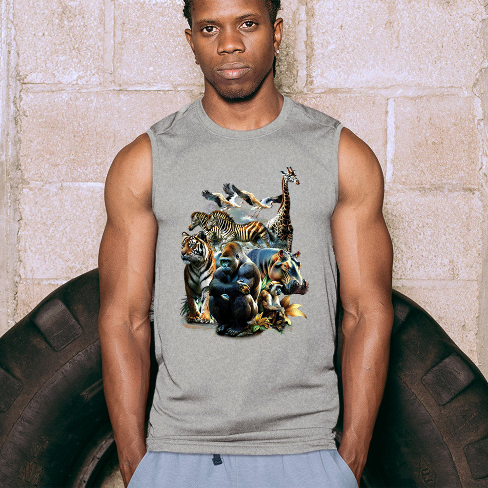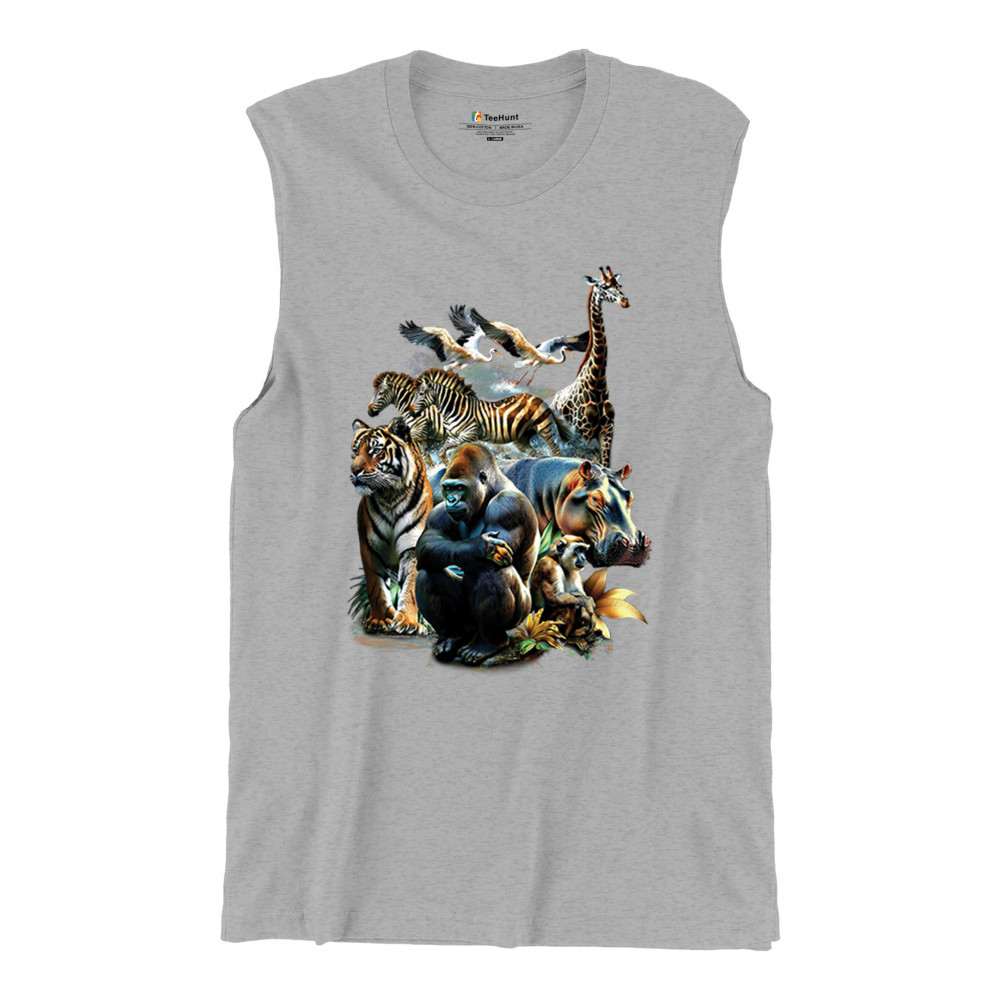 Packed with fierce energy and vibrant color, this wildlife design features a jungle coalition of gorilla, tiger, monkey, zebra, giraffe, hippo, and birds. A powerful tribute to animal beauty, biodiversity, and nature's harmony. Perfect for jungle tour enthusiasts, zoo visitors, or anyone passionate about wild conservation and stunning creature art.