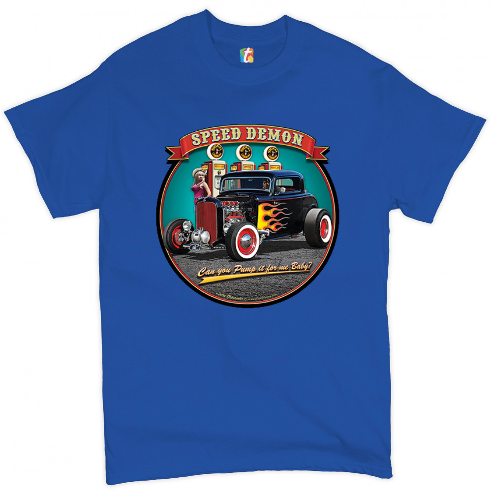 1932 DEUCE SPEED DEMON t-shirt hot rod muscle car drag racing men's tee royal blue