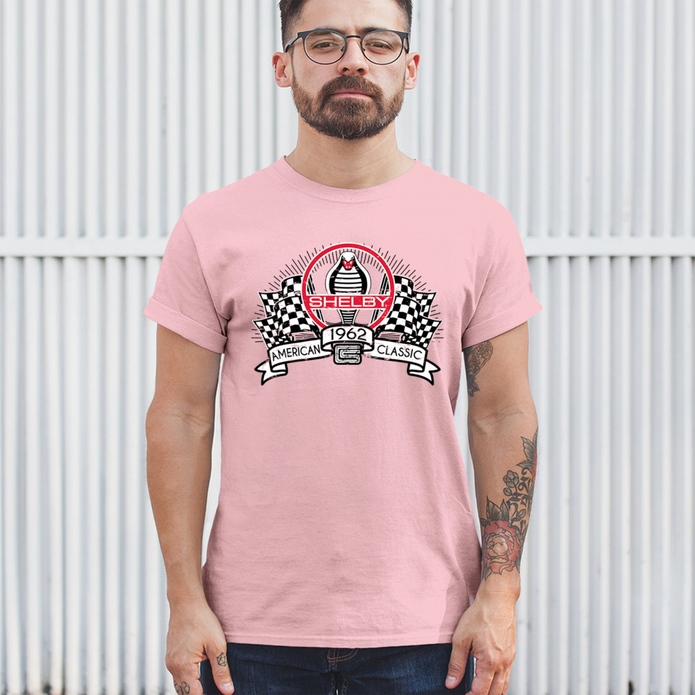Celebrate 50 years of Shelby's American-made muscle with this classic design, capturing the essence of the Cobra, GT350, and the legendary Ford Mustang.
