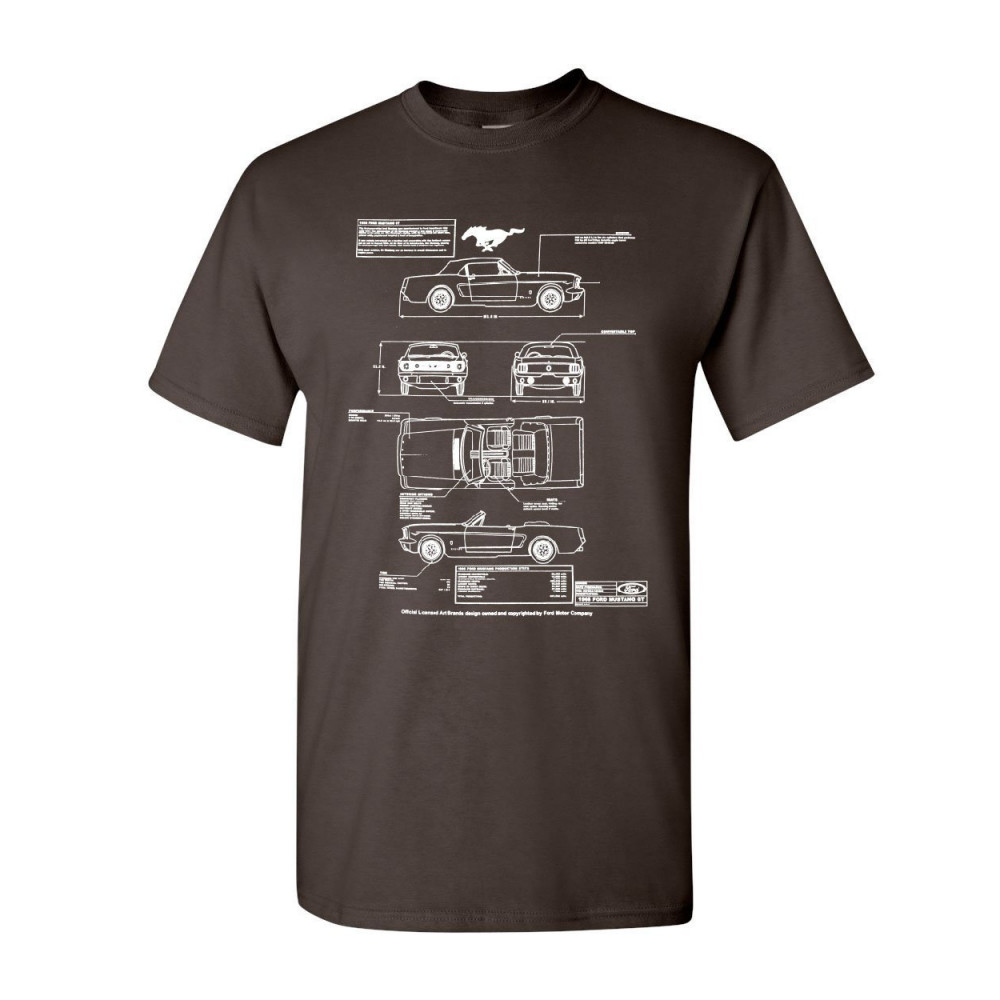 1966 FORD MUSTANG GT BLUEPRINT t-shirt american classic cotton tee brown