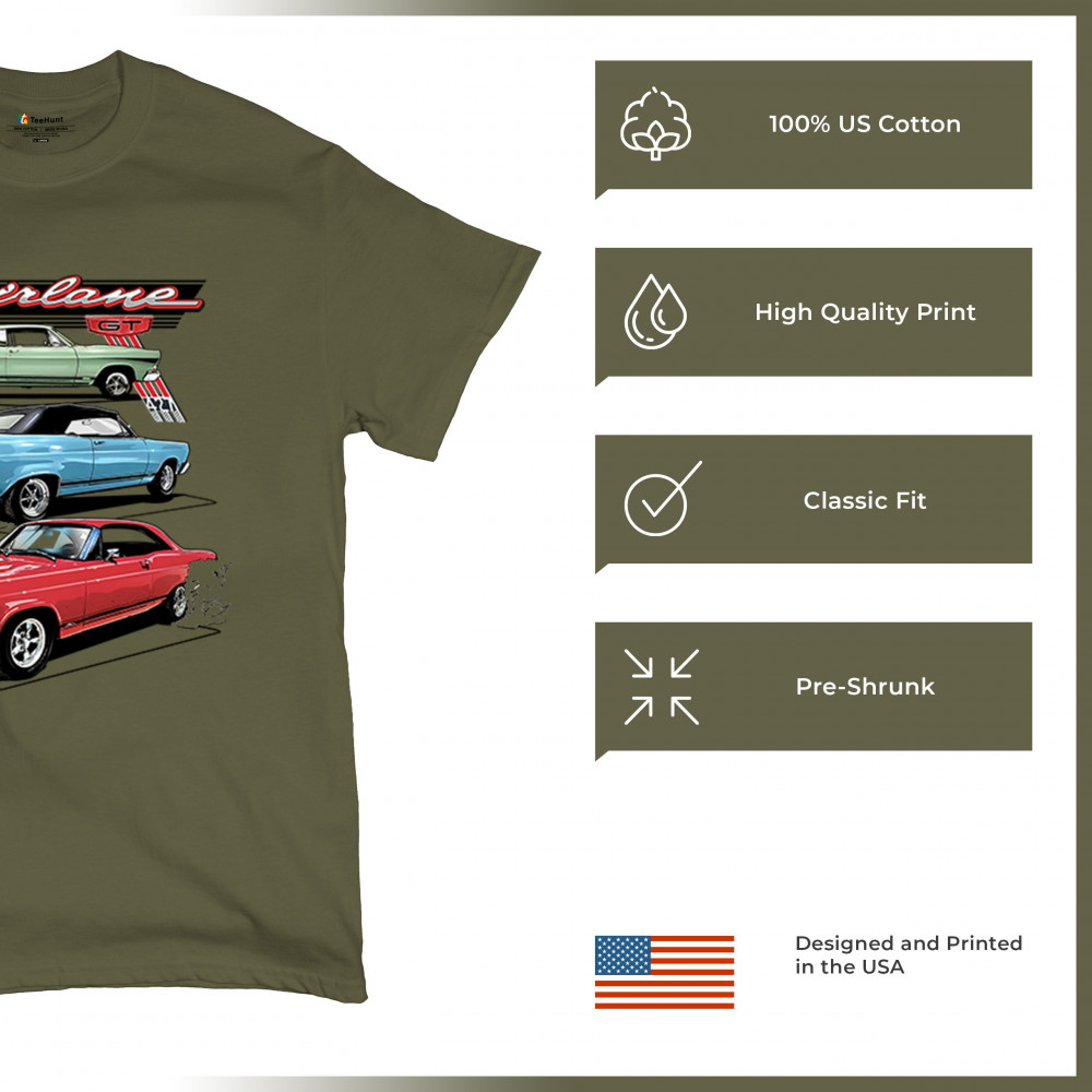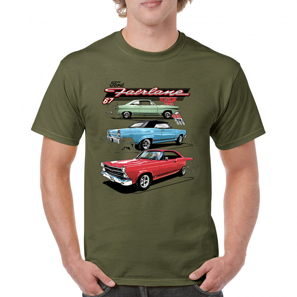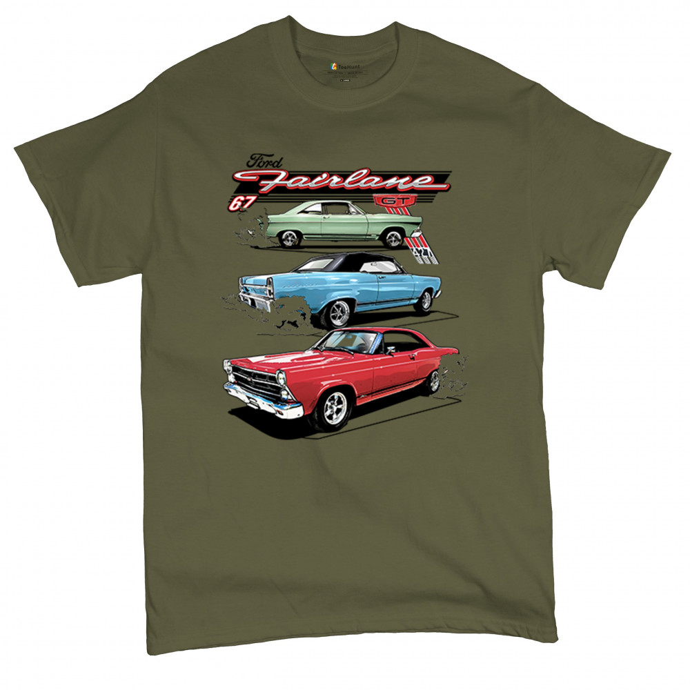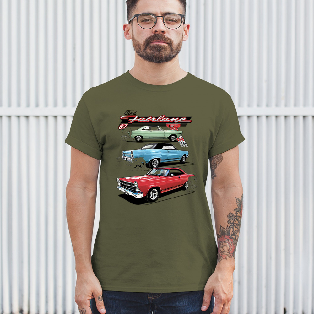 Celebrate the raw power of the 1967 Ford Fairlane GT with this burnout-charged design. Featuring three muscle cars in retro detail, it's made for vintage Ford collectors, classic car fans, and V8 enthusiasts. Whether you're heading to a show or wrenching in the garage, this design brings the roar of the 60s.