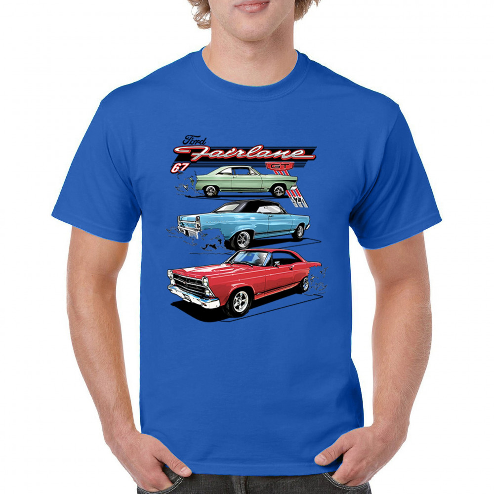 Celebrate the raw power of the 1967 Ford Fairlane GT with this burnout-charged design. Featuring three muscle cars in retro detail, it's made for vintage Ford collectors, classic car fans, and V8 enthusiasts. Whether you're heading to a show or wrenching in the garage, this design brings the roar of the 60s.