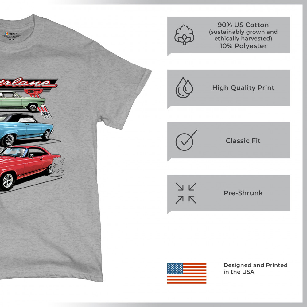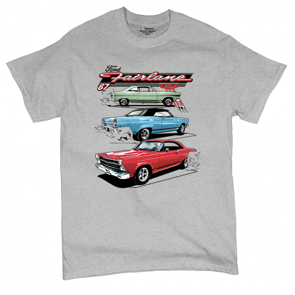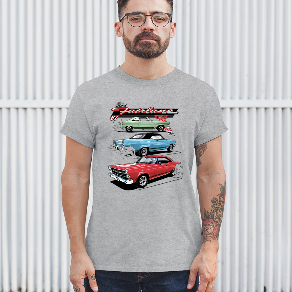 Celebrate the raw power of the 1967 Ford Fairlane GT with this burnout-charged design. Featuring three muscle cars in retro detail, it's made for vintage Ford collectors, classic car fans, and V8 enthusiasts. Whether you're heading to a show or wrenching in the garage, this design brings the roar of the 60s.