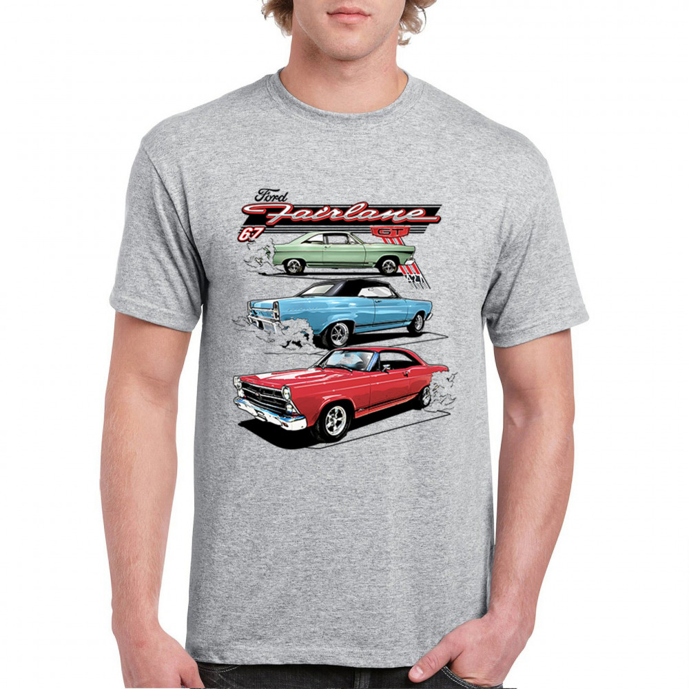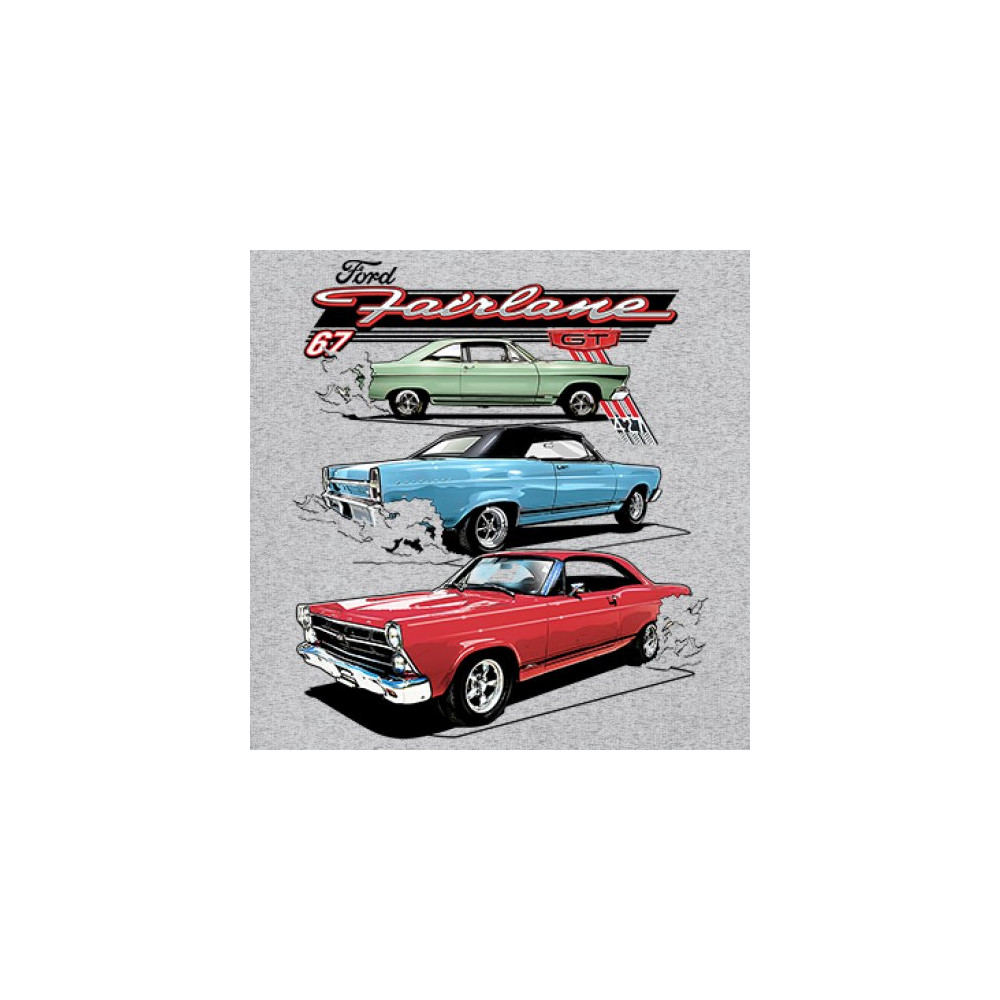 Features three 1967 Ford Fairlane GTs with retro burnout style. Great for muscle car fans, Ford collectors, car shows, and vintage meetups.