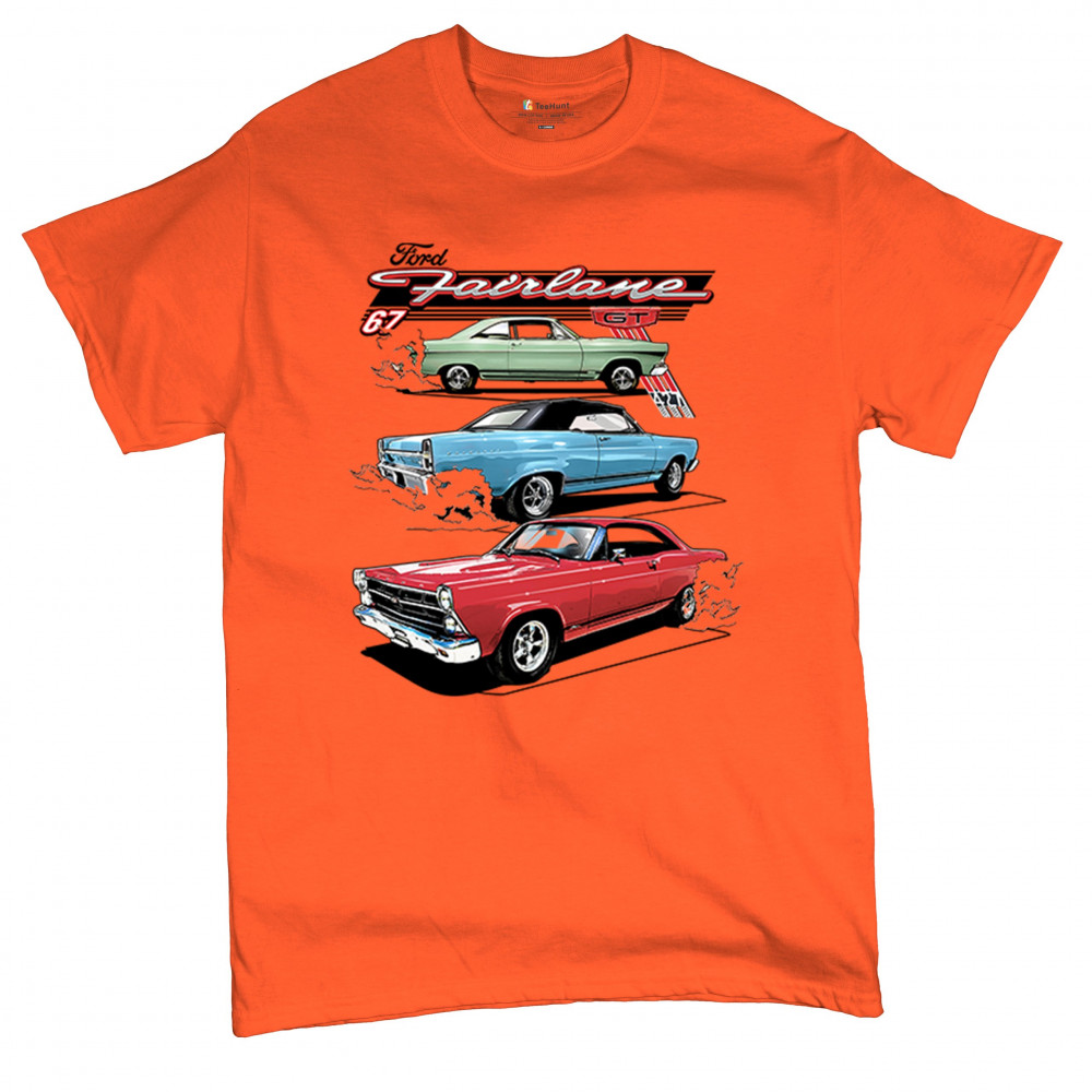 Features three 1967 Ford Fairlane GTs with retro burnout style. Great for muscle car fans, Ford collectors, car shows, and vintage meetups.