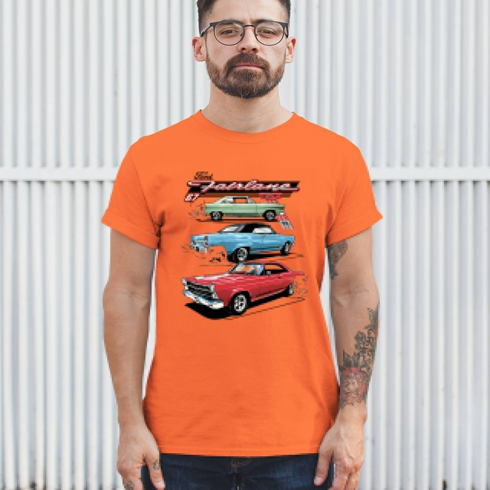 Celebrate the raw power of the 1967 Ford Fairlane GT with this burnout-charged design. Featuring three muscle cars in retro detail, it's made for vintage Ford collectors, classic car fans, and V8 enthusiasts. Whether you're heading to a show or wrenching in the garage, this design brings the roar of the 60s.