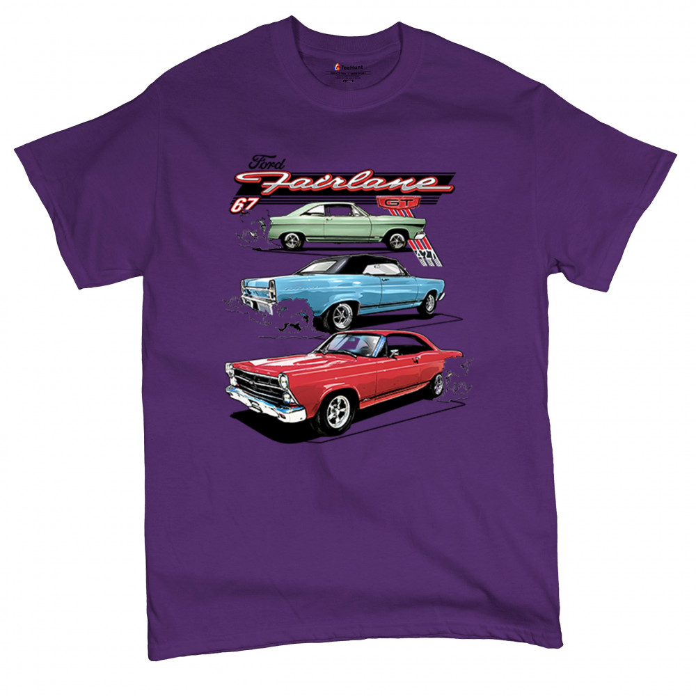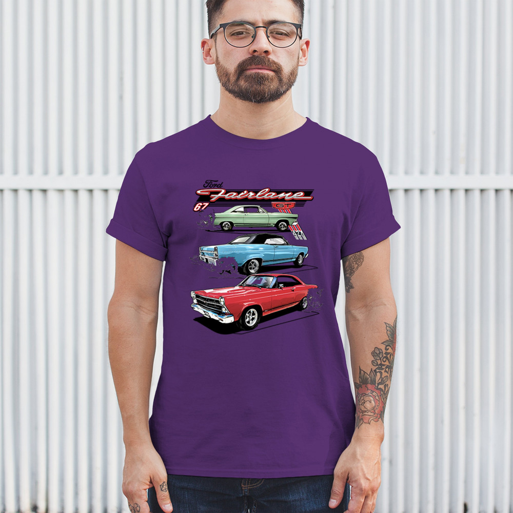 Celebrate the raw power of the 1967 Ford Fairlane GT with this burnout-charged design. Featuring three muscle cars in retro detail, it's made for vintage Ford collectors, classic car fans, and V8 enthusiasts. Whether you're heading to a show or wrenching in the garage, this design brings the roar of the 60s.