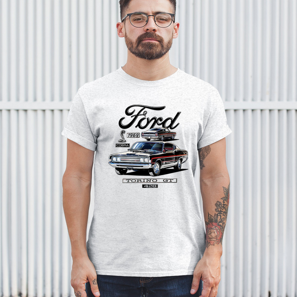 Celebrate raw muscle with this 1969 Ford Torino GT Cobra design. Featuring racing stripes, fastback lines, and Cobra detailing, it’s a standout piece for vintage car collectors, Ford lovers, and fans of Detroit power. Whether on display in a garage or worn to an auto show, it roars with classic performance pride.