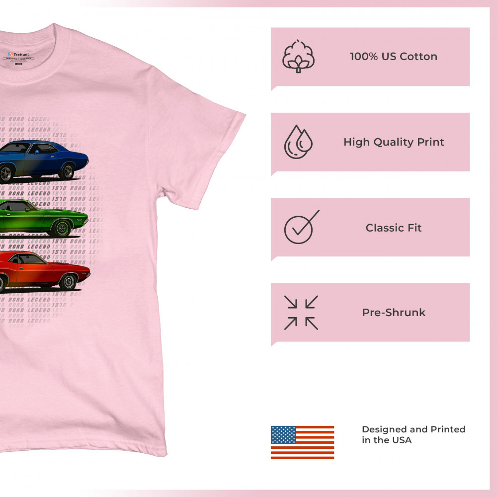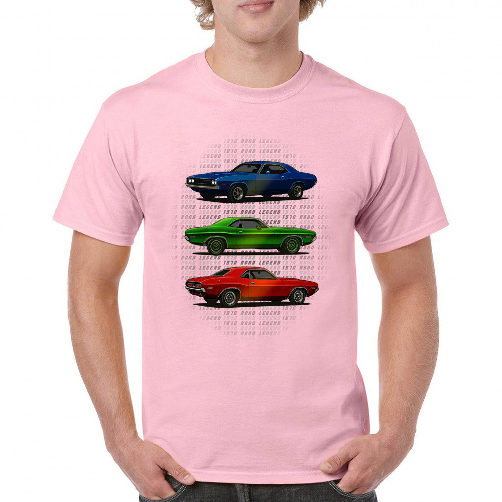 Three bold 1970 muscle cars, stacked in red, green, and blue, celebrate vintage power and road legend status. This retro-inspired design captures the essence of American car culture—made for gearheads, V8 fans, and anyone who lives for classic performance, heritage, and style.