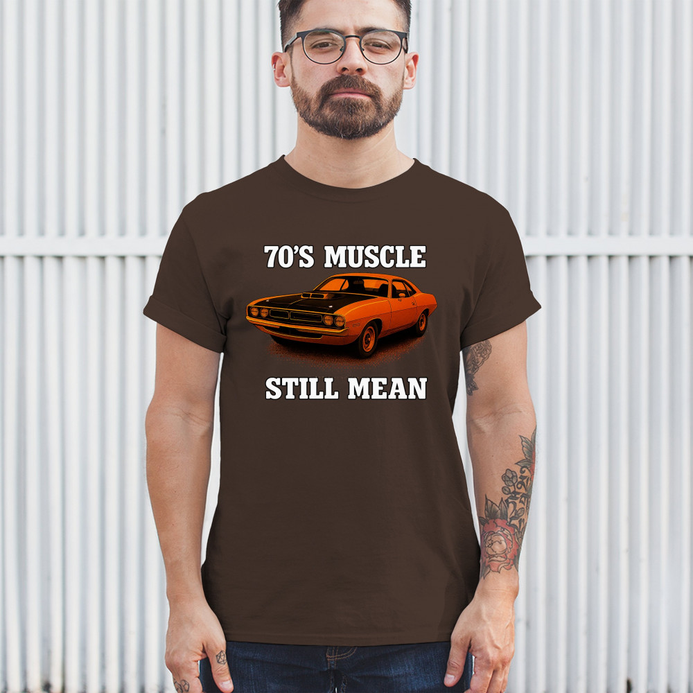 Celebrate vintage horsepower with this bold 70s muscle car design that proves it's still mean. Features classic styling, aggressive stance, and old-school V8 performance pride. A must-have for retro car collectors, gearheads, and muscle enthusiasts who live for raw American power.