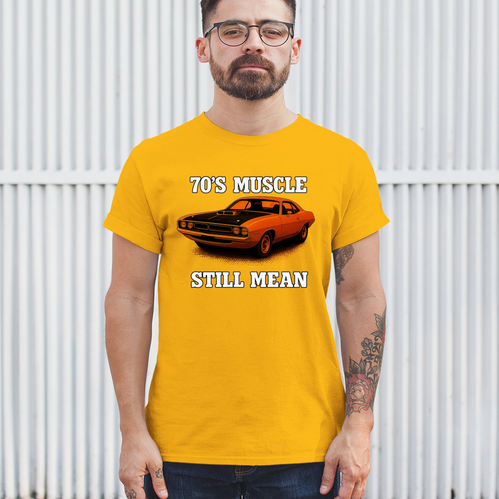 Celebrate vintage horsepower with this bold 70s muscle car design that proves it's still mean. Features classic styling, aggressive stance, and old-school V8 performance pride. A must-have for retro car collectors, gearheads, and muscle enthusiasts who live for raw American power.