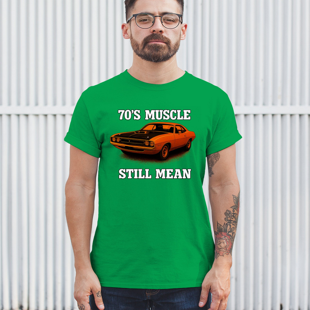 Celebrate vintage horsepower with this bold 70s muscle car design that proves it's still mean. Features classic styling, aggressive stance, and old-school V8 performance pride. A must-have for retro car collectors, gearheads, and muscle enthusiasts who live for raw American power.