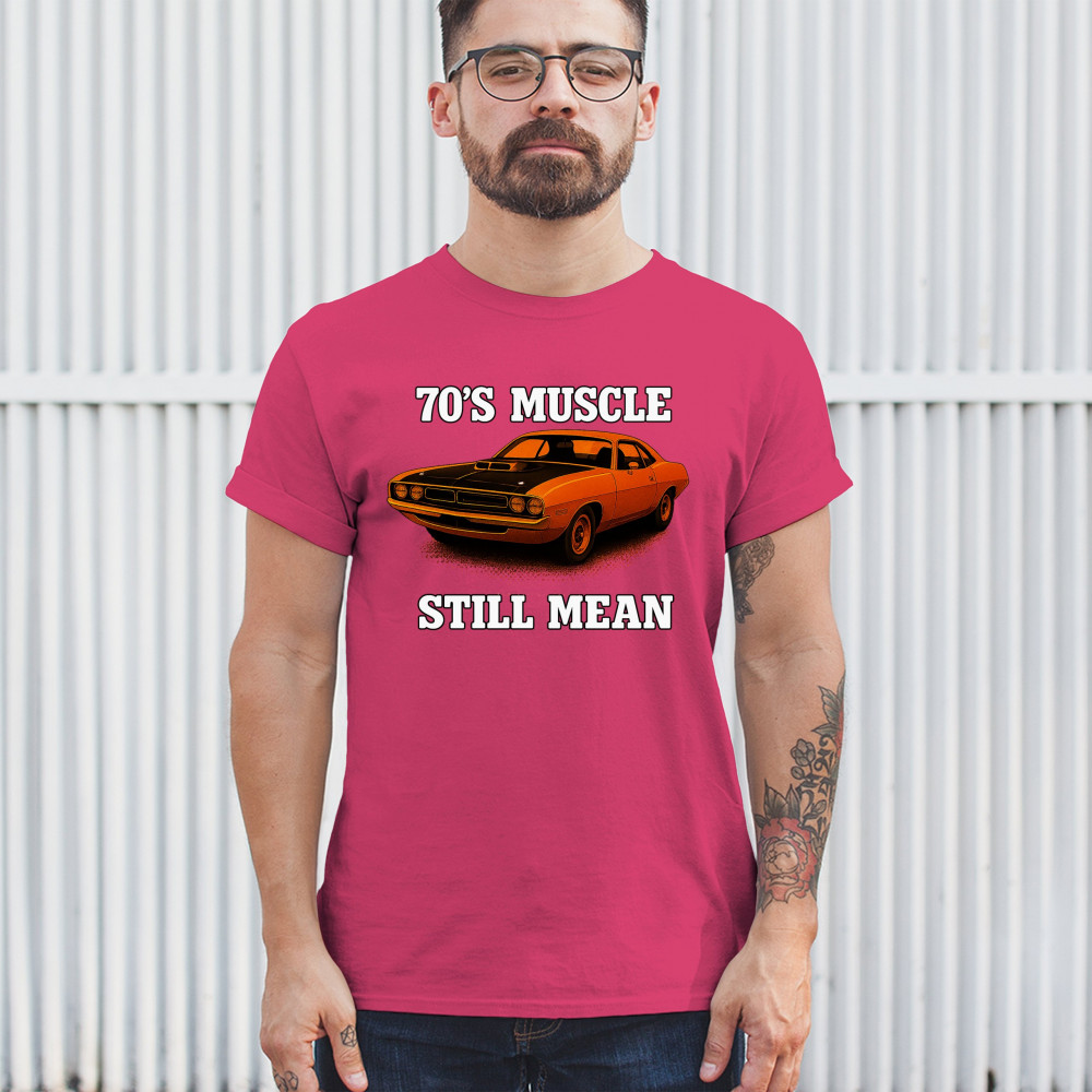 Celebrate vintage horsepower with this bold 70s muscle car design that proves it's still mean. Features classic styling, aggressive stance, and old-school V8 performance pride. A must-have for retro car collectors, gearheads, and muscle enthusiasts who live for raw American power.