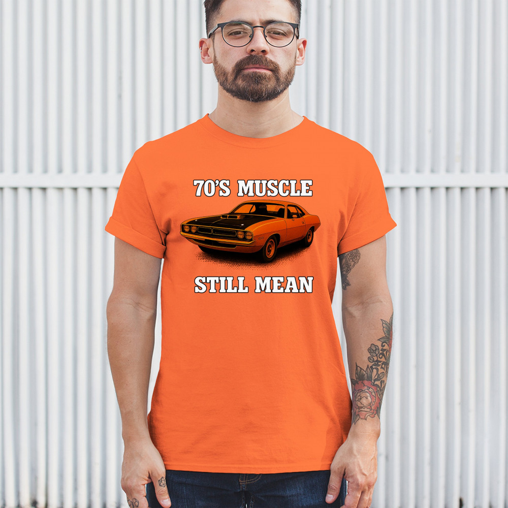 Celebrate vintage horsepower with this bold 70s muscle car design that proves it's still mean. Features classic styling, aggressive stance, and old-school V8 performance pride. A must-have for retro car collectors, gearheads, and muscle enthusiasts who live for raw American power.