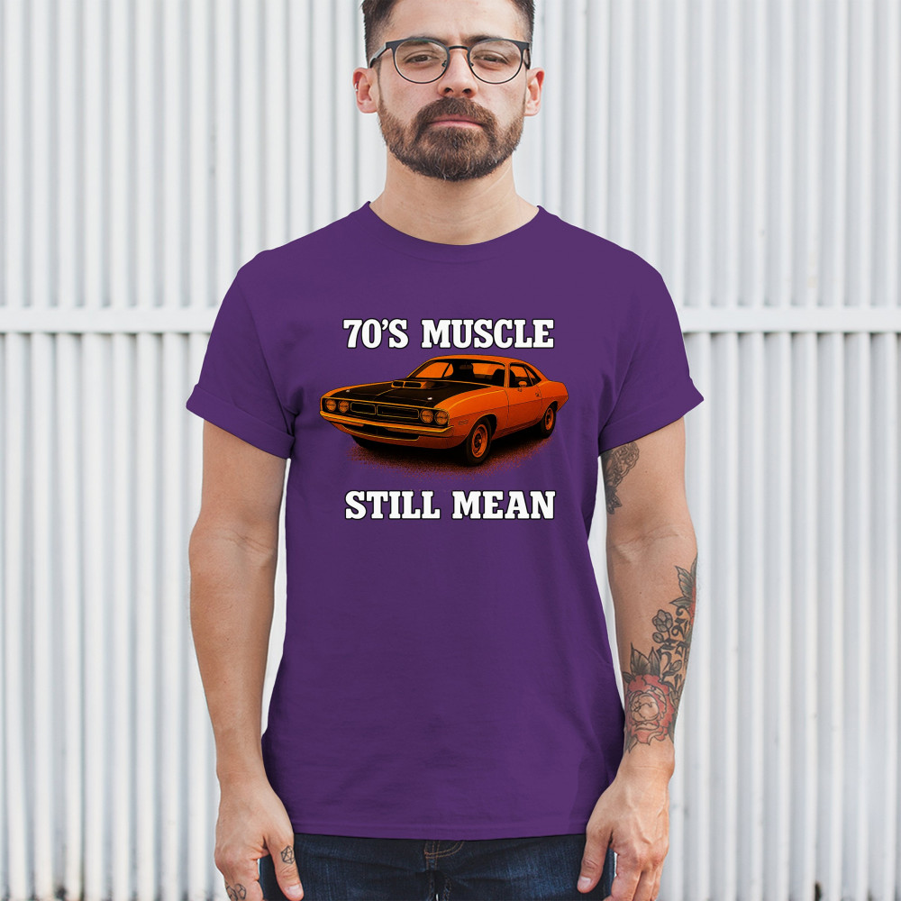 Celebrate vintage horsepower with this bold 70s muscle car design that proves it's still mean. Features classic styling, aggressive stance, and old-school V8 performance pride. A must-have for retro car collectors, gearheads, and muscle enthusiasts who live for raw American power.