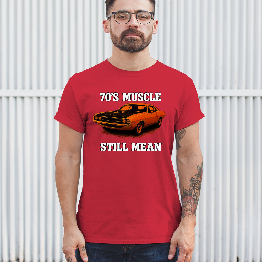 Celebrate vintage horsepower with this bold 70s muscle car design that proves it's still mean. Features classic styling, aggressive stance, and old-school V8 performance pride. A must-have for retro car collectors, gearheads, and muscle enthusiasts who live for raw American power.
