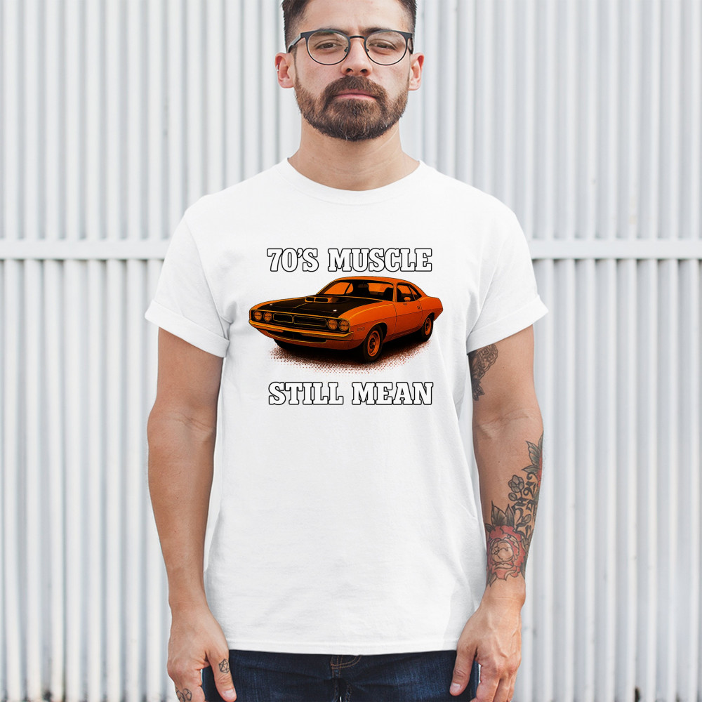 Celebrate vintage horsepower with this bold 70s muscle car design that proves it's still mean. Features classic styling, aggressive stance, and old-school V8 performance pride. A must-have for retro car collectors, gearheads, and muscle enthusiasts who live for raw American power.