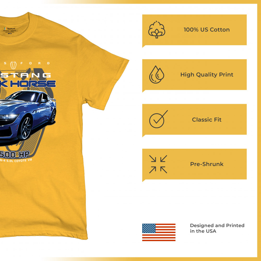 Mustang Dark Horse 500 HP design featuring V8 muscle and street styling. Perfect for Ford fans, car meets, and modern performance lovers.