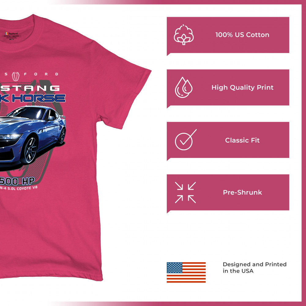 Mustang Dark Horse 500 HP design featuring V8 muscle and street styling. Perfect for Ford fans, car meets, and modern performance lovers.