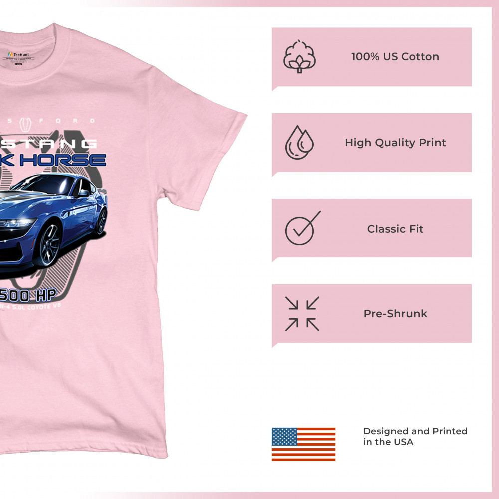 Mustang Dark Horse 500 HP design featuring V8 muscle and street styling. Perfect for Ford fans, car meets, and modern performance lovers.