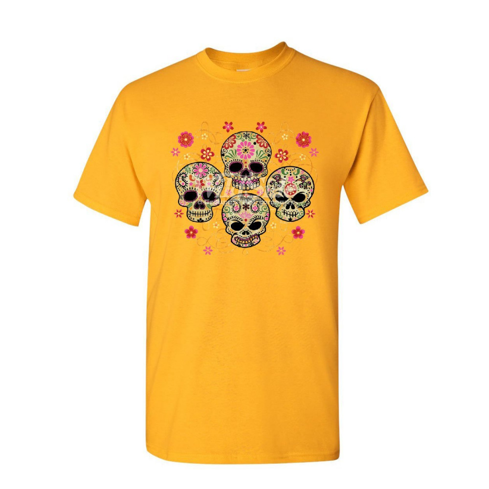 4 CUTE SUGAR SKULLS t-shirt calaveras dia de los muertos mexico mens tee shirt yellow