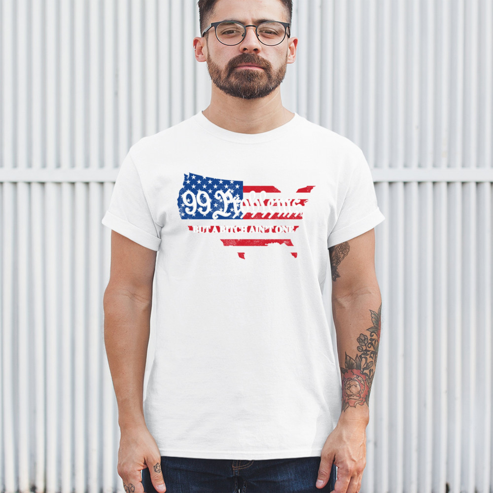 Embrace your patriotic spirit with this striking "99 Problems But a B*tch Ain't One" design, blending the American map and flag-inspired elements. Perfect for Trump supporters, conservatives, and all who believe in the values of freedom, victory, and the Republican Red Wave. Celebrate your commitment to America and make a statement that reflects your unwavering belief in the people's mandate and the party of common sense.