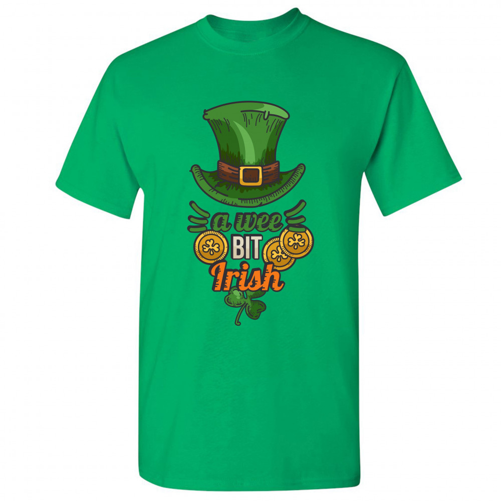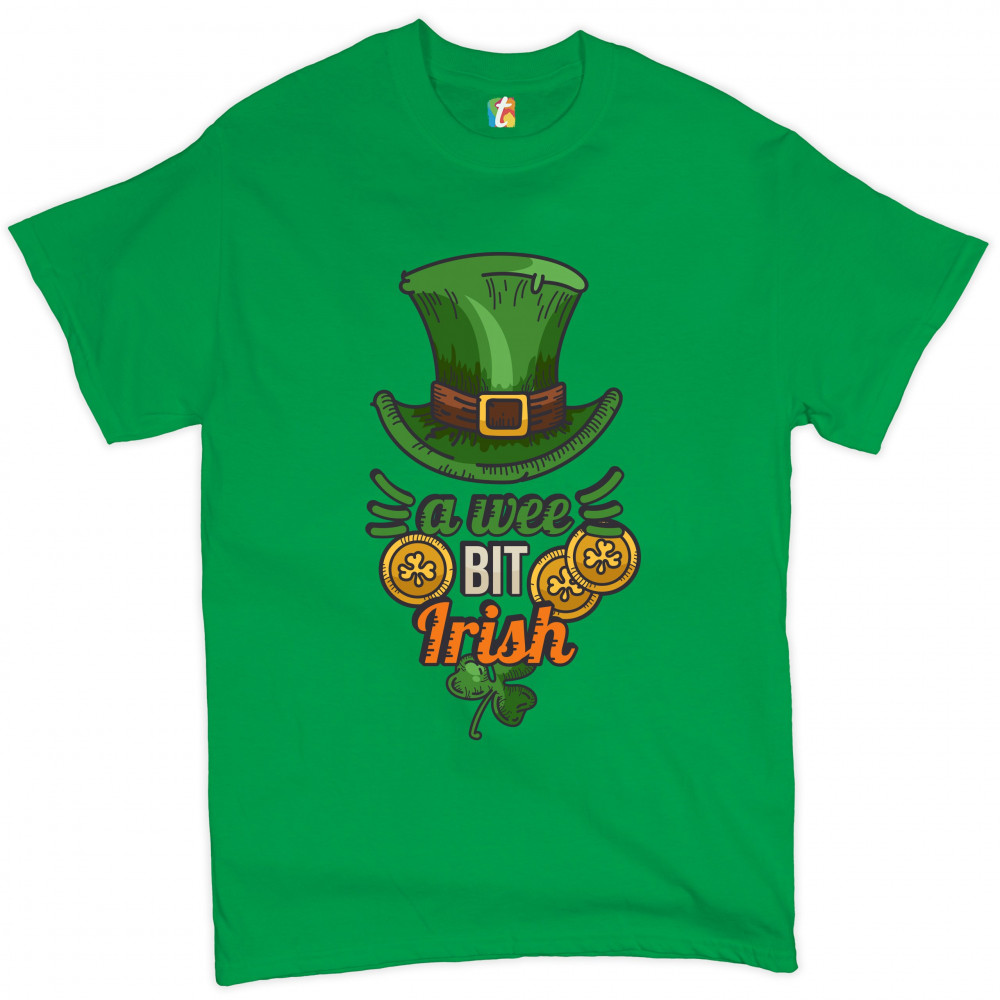 A WEE BIT IRISH t-shirt st. patrick's day shamrock leprechaun hat men's tee green