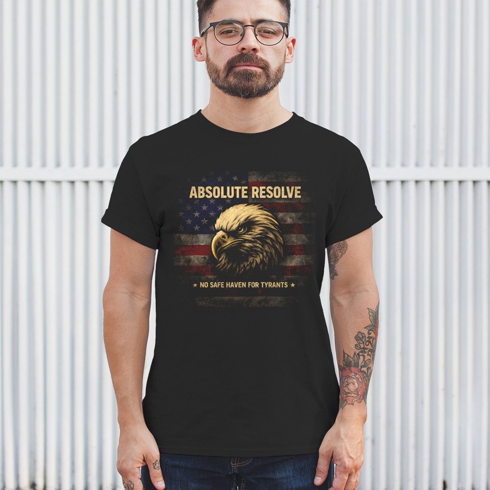 ABSOLUTE RESOLVE t-shirt american flag bald eagle military force men's tee black