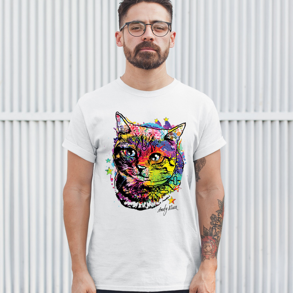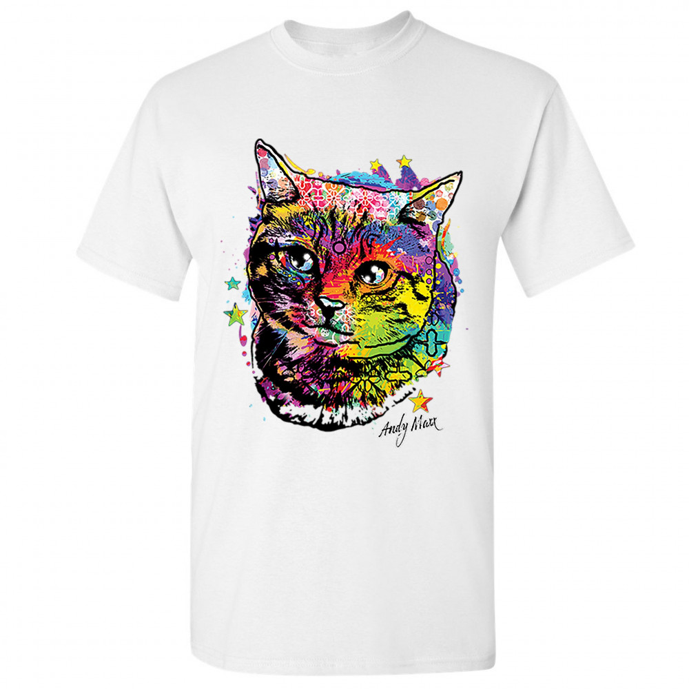 ADORABLE KITTEN t-shirt neon multicolor kitty andy maxx cat lover men's tee white