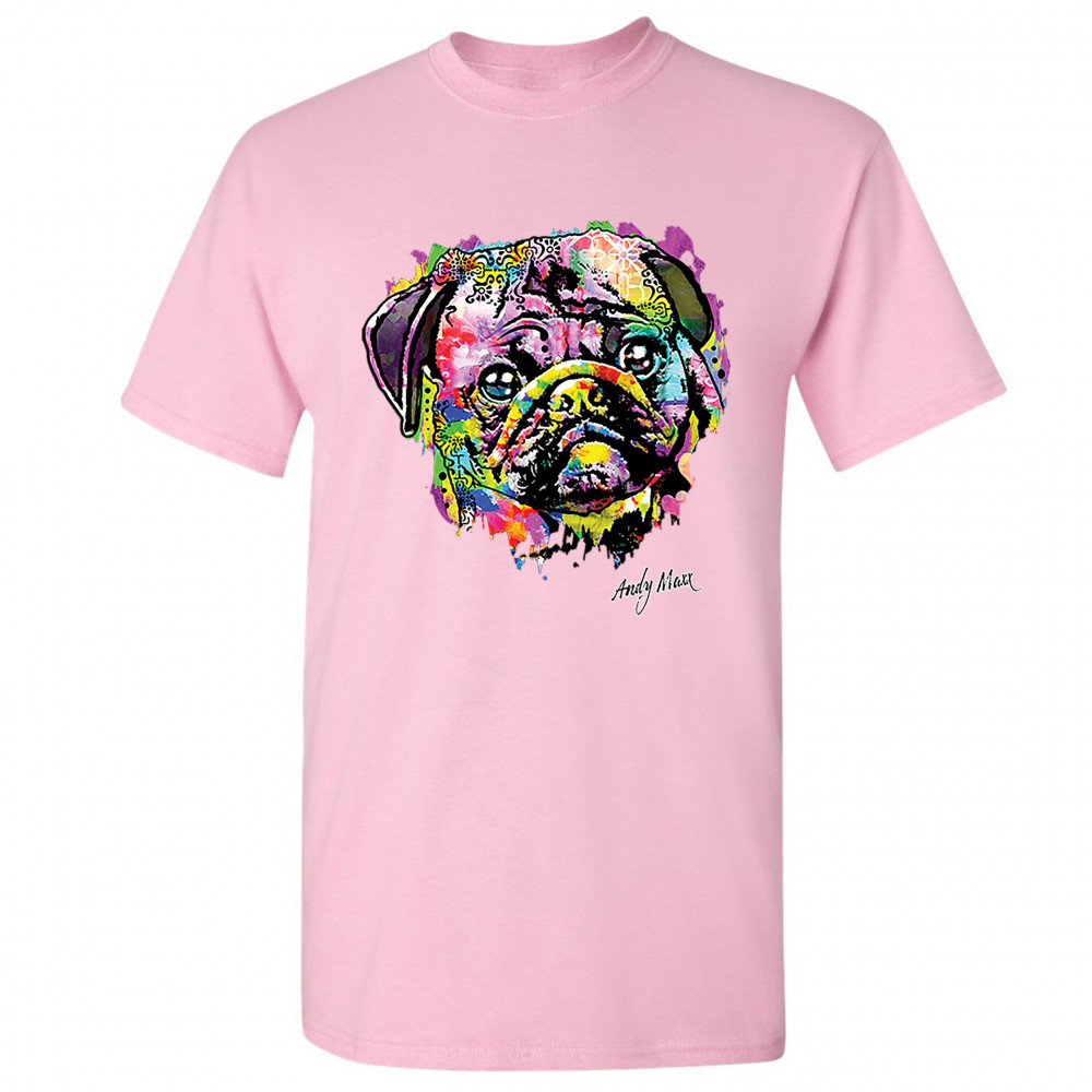ADORABLE PUG t-shirt andy maxx pet owner i love my dog doggie men's tee light pink