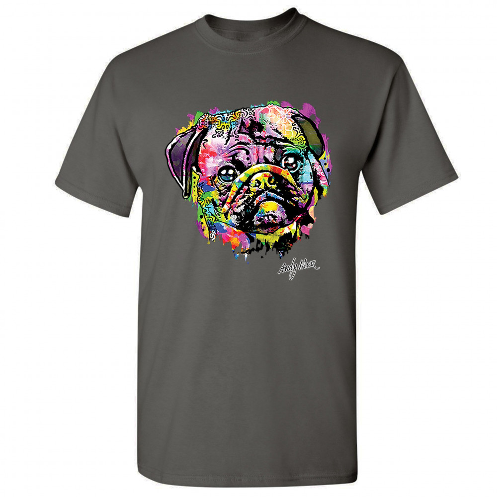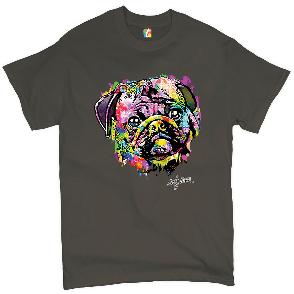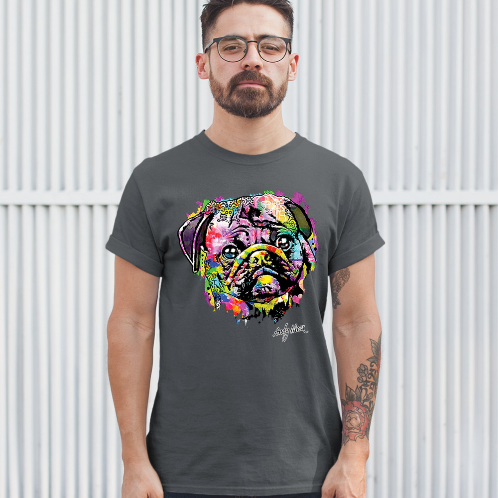A beautiful print featuring a colorful face of an adorable pug. Below the dog the name of the artist - Andy Maxx - is included. A great choice for a person who is in love with these adorable and gentle dogs.