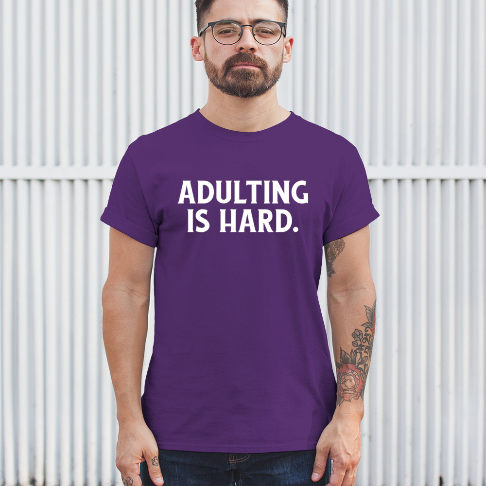 Our 'ADULTING IS HARD.' shirt is the ultimate expression of modern life's humorous side. Ideal for anyone from stressed-out parents to sarcastic Gen Z teenagers who believe 'don't grow up it's a trap.' Whether you're celebrating a birthday or just need to say 'nope' to adulting, this tee is your badge of honor. Embrace your 'adultish' lifestyle, with a side of wine or coffee, and let the world know that you're doing your best.