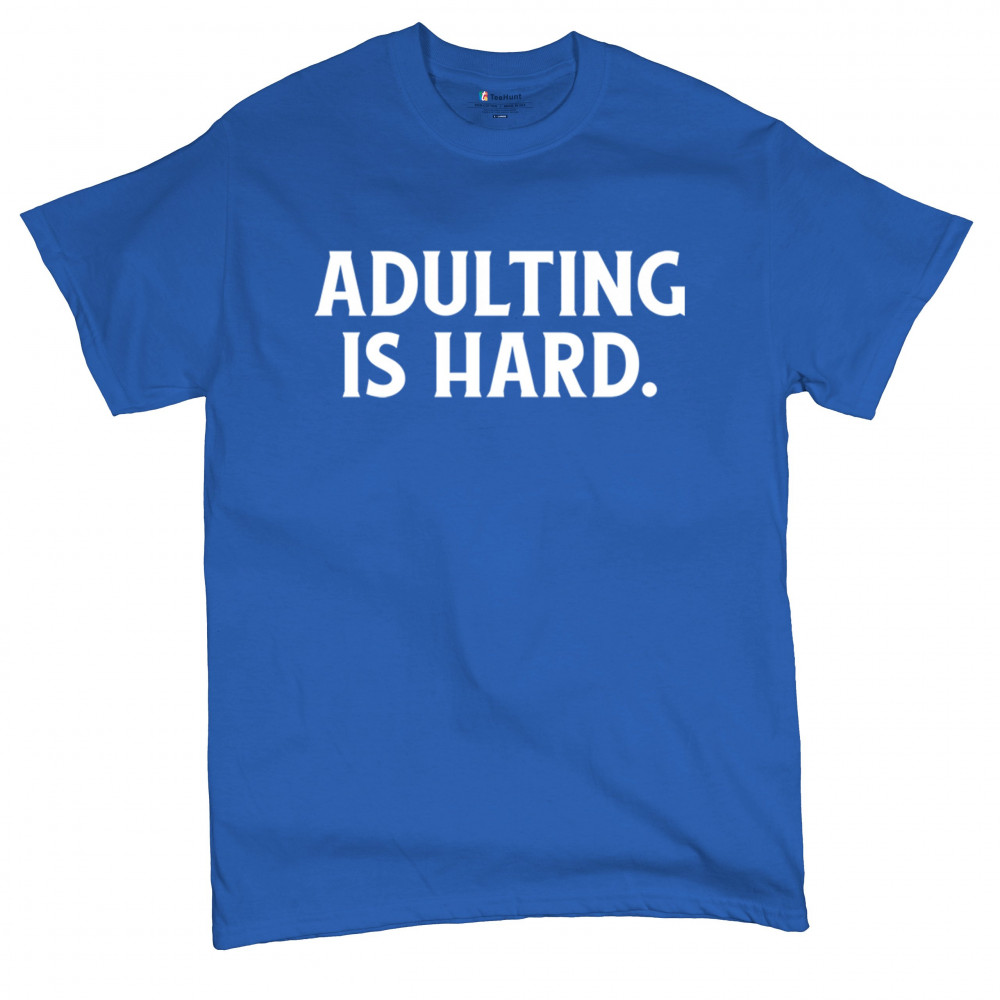Our 'ADULTING IS HARD.' shirt is the ultimate expression of modern life's humorous side. Ideal for anyone from stressed-out parents to sarcastic Gen Z teenagers who believe 'don't grow up it's a trap.' Whether you're celebrating a birthday or just need to say 'nope' to adulting, this tee is your badge of honor. Embrace your 'adultish' lifestyle, with a side of wine or coffee, and let the world know that you're doing your best.