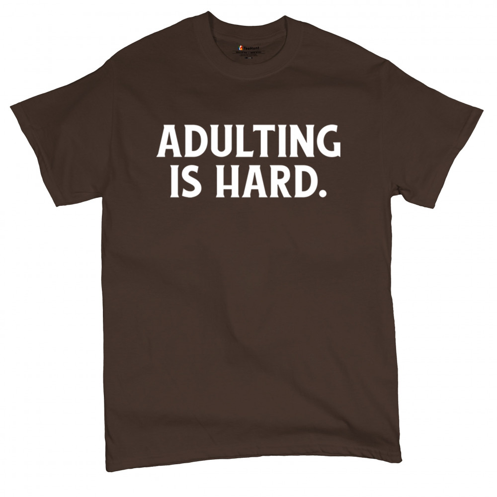 Our 'ADULTING IS HARD.' shirt is the ultimate expression of modern life's humorous side. Ideal for anyone from stressed-out parents to sarcastic Gen Z teenagers who believe 'don't grow up it's a trap.' Whether you're celebrating a birthday or just need to say 'nope' to adulting, this tee is your badge of honor. Embrace your 'adultish' lifestyle, with a side of wine or coffee, and let the world know that you're doing your best.