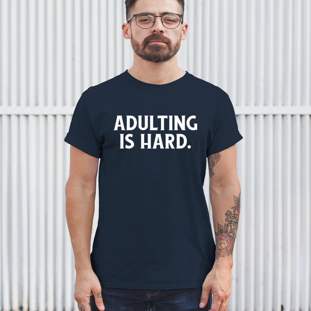 Our 'ADULTING IS HARD.' shirt is the ultimate expression of modern life's humorous side. Ideal for anyone from stressed-out parents to sarcastic Gen Z teenagers who believe 'don't grow up it's a trap.' Whether you're celebrating a birthday or just need to say 'nope' to adulting, this tee is your badge of honor. Embrace your 'adultish' lifestyle, with a side of wine or coffee, and let the world know that you're doing your best.