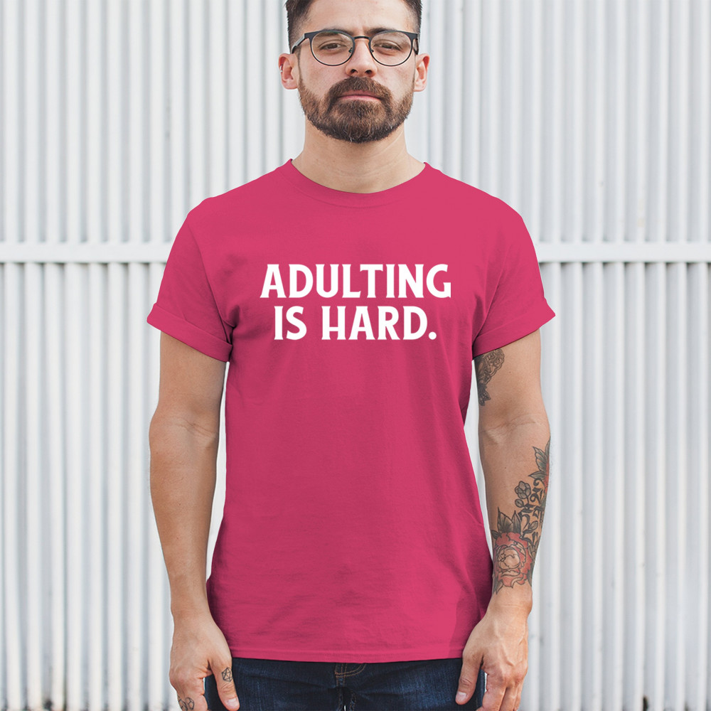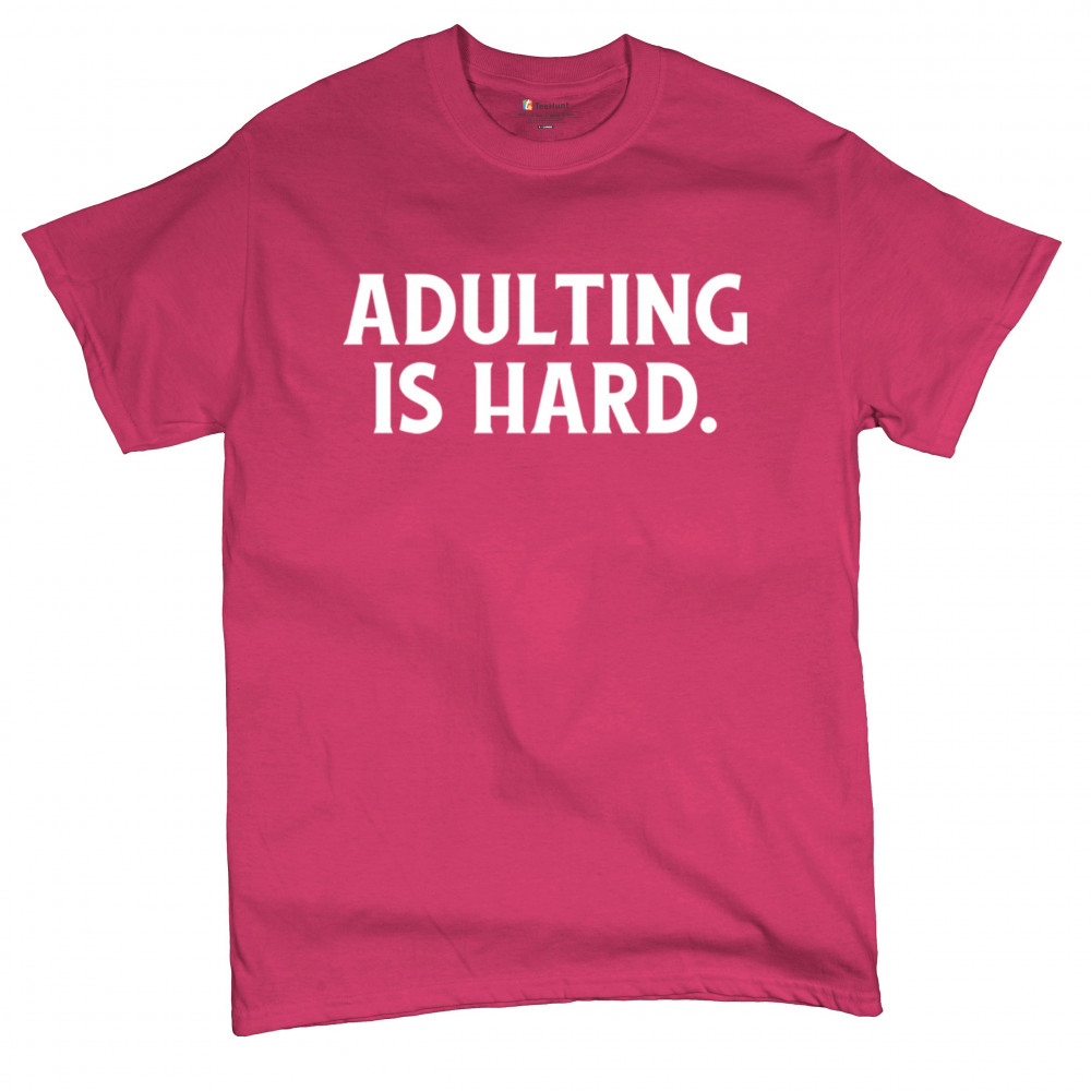 Our 'ADULTING IS HARD.' shirt is the ultimate expression of modern life's humorous side. Ideal for anyone from stressed-out parents to sarcastic Gen Z teenagers who believe 'don't grow up it's a trap.' Whether you're celebrating a birthday or just need to say 'nope' to adulting, this tee is your badge of honor. Embrace your 'adultish' lifestyle, with a side of wine or coffee, and let the world know that you're doing your best.