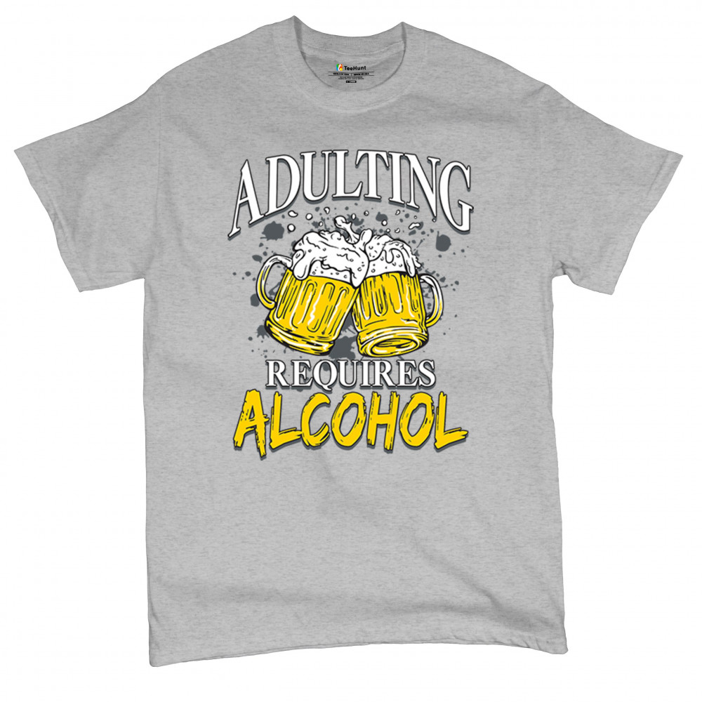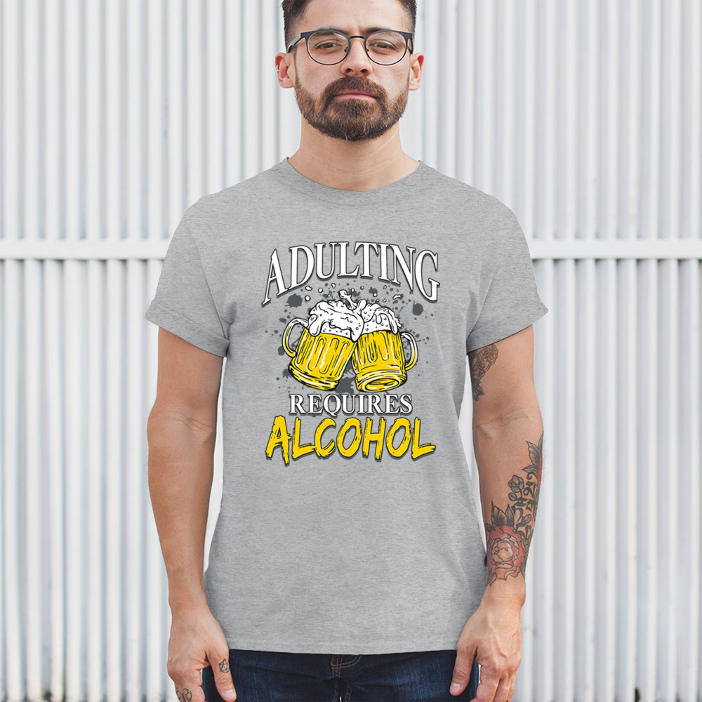 This bold design features two foamy beer mugs clinking together under the phrase “Adulting Requires Alcohol.†Perfect for sarcastic beer lovers, party animals, and anyone navigating grown-up life with booze in hand. Ideal for bars, weekends, or just surviving Mondays with humor and hops.