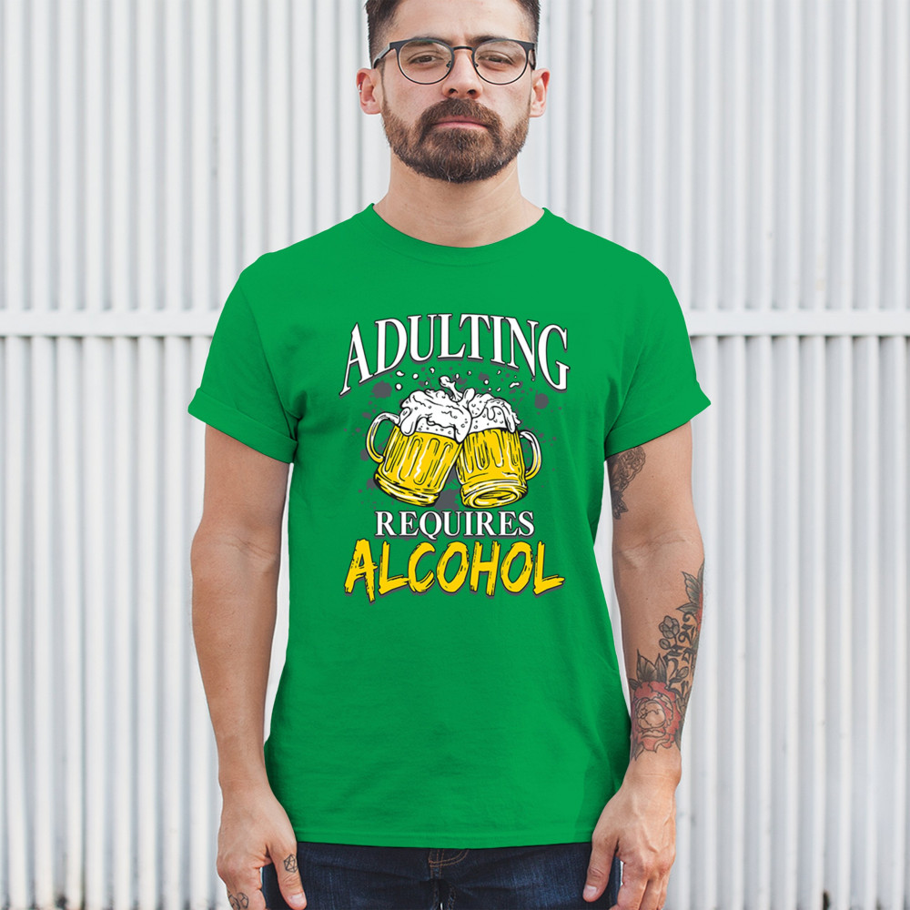 This bold design features two foamy beer mugs clinking together under the phrase “Adulting Requires Alcohol.†Perfect for sarcastic beer lovers, party animals, and anyone navigating grown-up life with booze in hand. Ideal for bars, weekends, or just surviving Mondays with humor and hops.