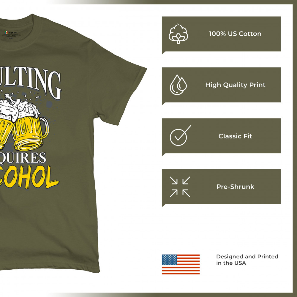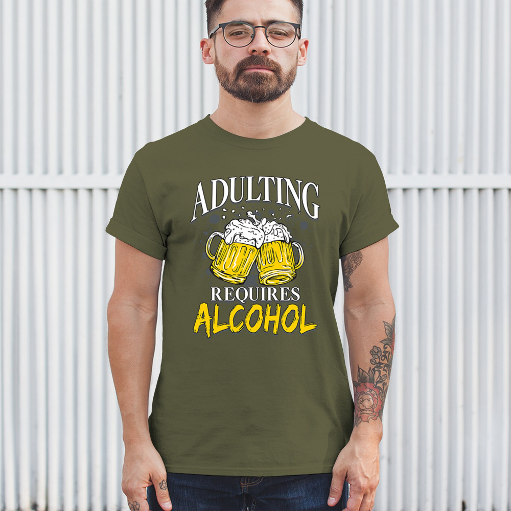 This bold design features two foamy beer mugs clinking together under the phrase “Adulting Requires Alcohol.†Perfect for sarcastic beer lovers, party animals, and anyone navigating grown-up life with booze in hand. Ideal for bars, weekends, or just surviving Mondays with humor and hops.