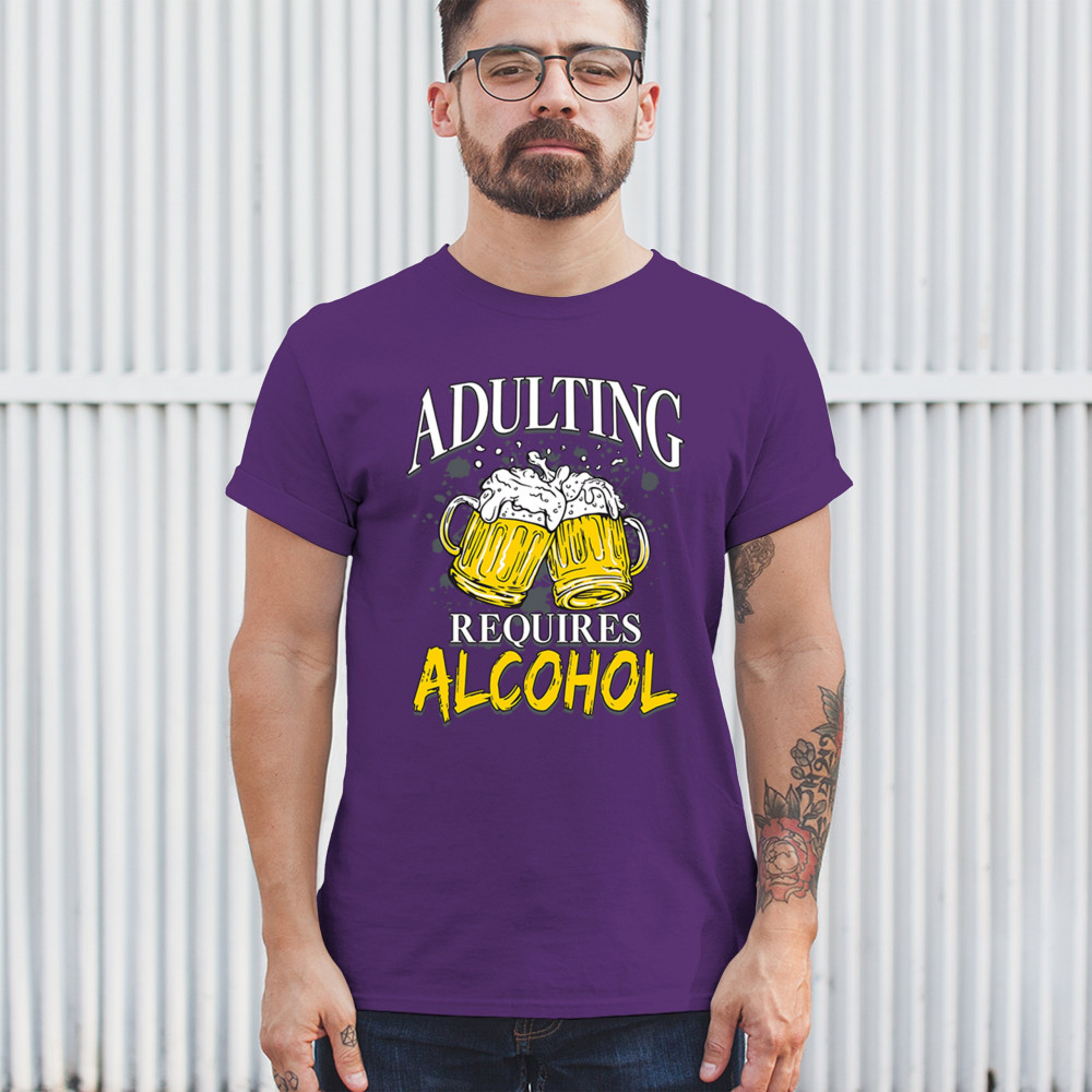 This bold design features two foamy beer mugs clinking together under the phrase “Adulting Requires Alcohol.†Perfect for sarcastic beer lovers, party animals, and anyone navigating grown-up life with booze in hand. Ideal for bars, weekends, or just surviving Mondays with humor and hops.